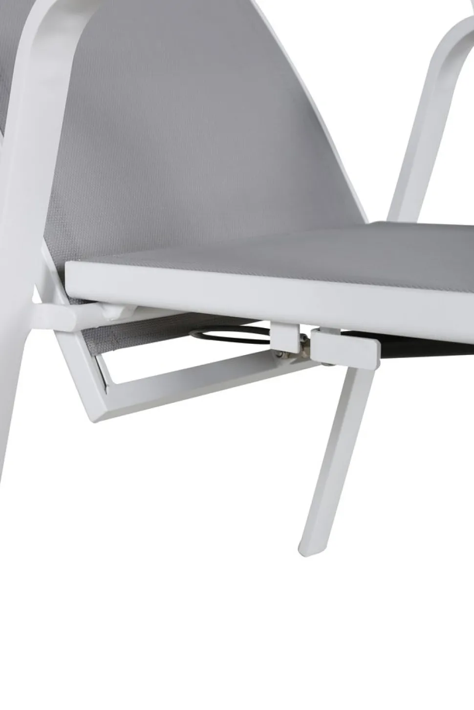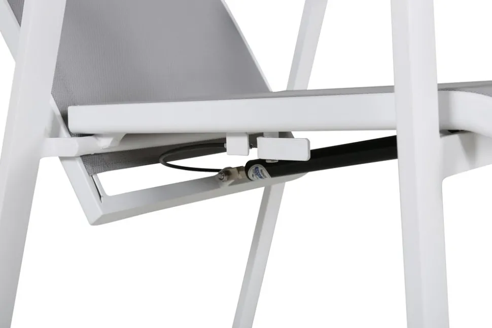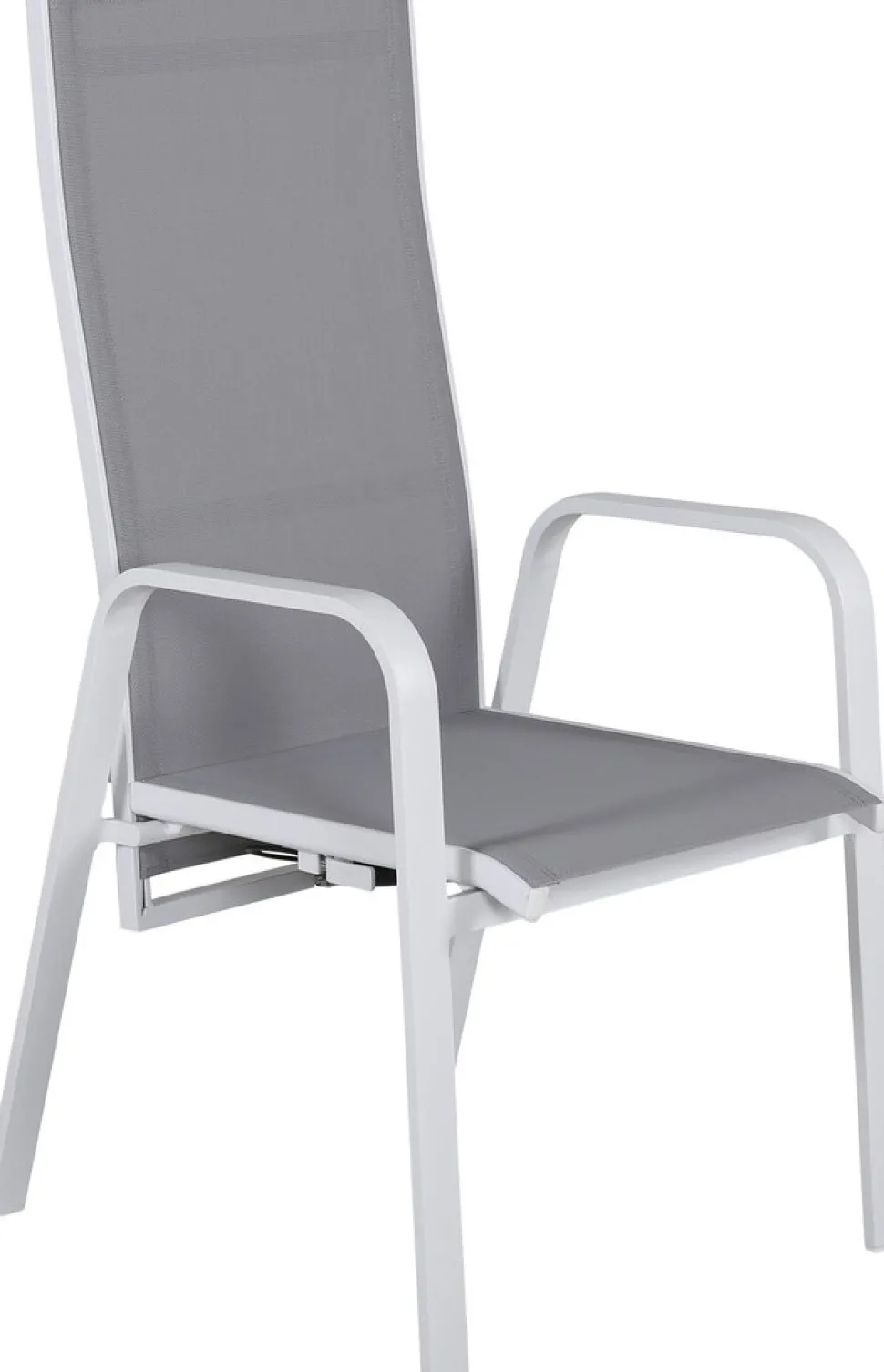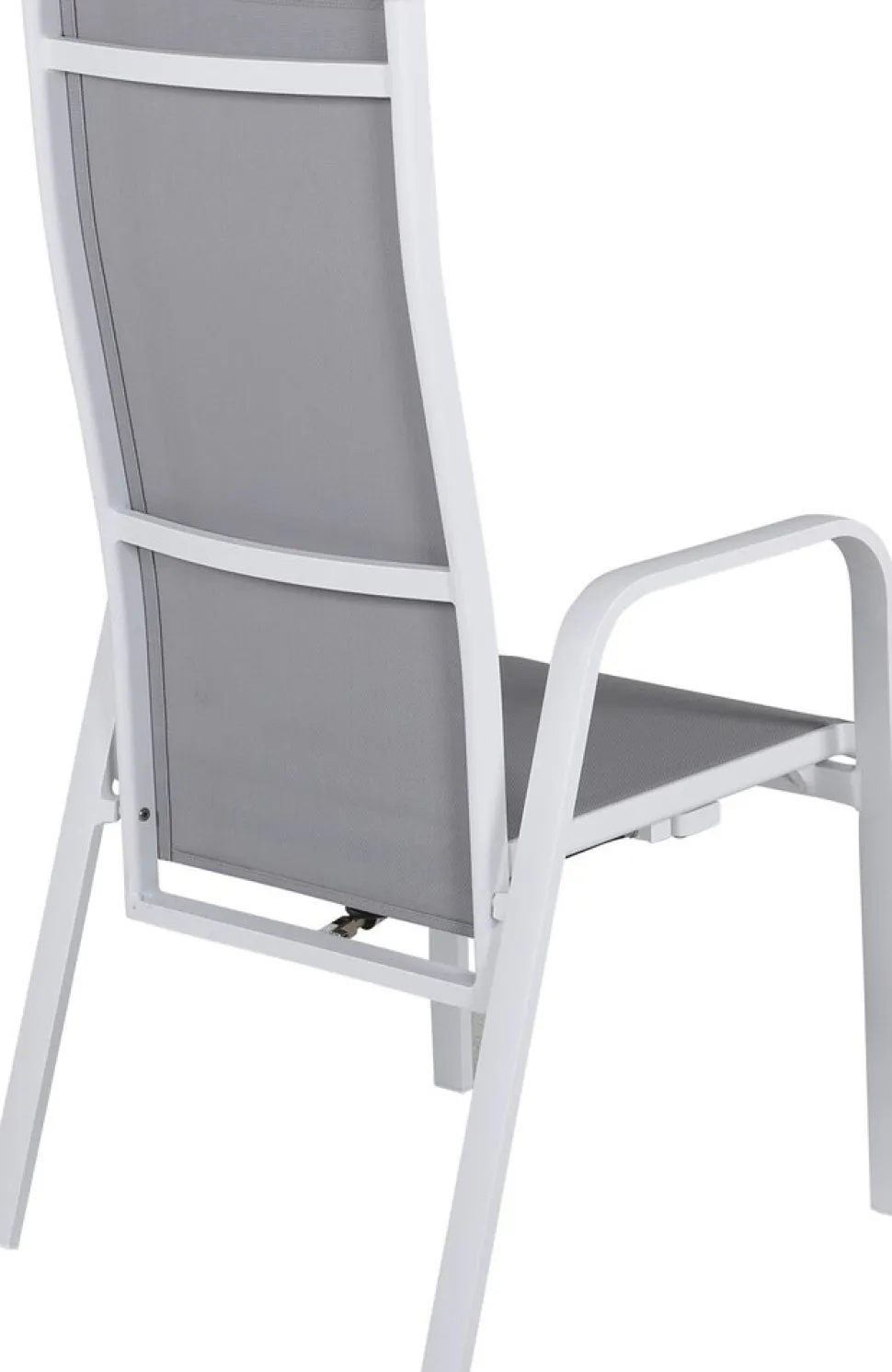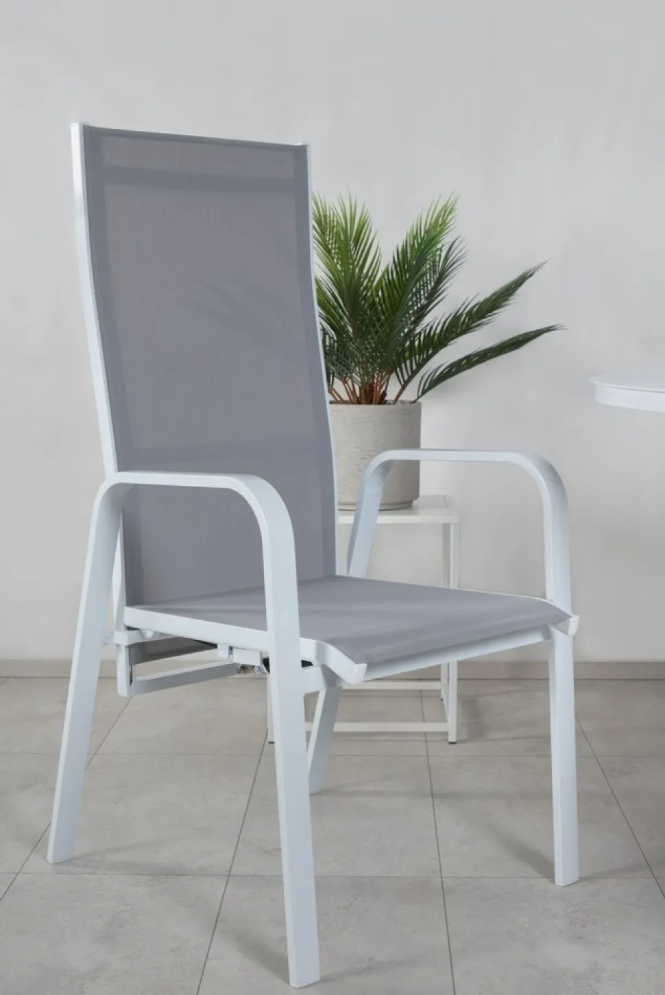 Vitgrå stapelbar karmstol från serien Copacabana som gör sig bra vid matbordet på altanen. Stolens ryggstöd går att fälla vilket gör att den är väldigt bekväm och praktisk. Njut av sommaren på allra bästa sätt! Skötselråd: Textilene är ett syntetiskt tyg som är tillverkat av PVC-behandlad polyester. Materialet är vattenresistent och UV-behandlat för att motverka solens blekning. Rengöring bör göras ungefär en gång i månaden, använd en fuktig trasa och torka av.