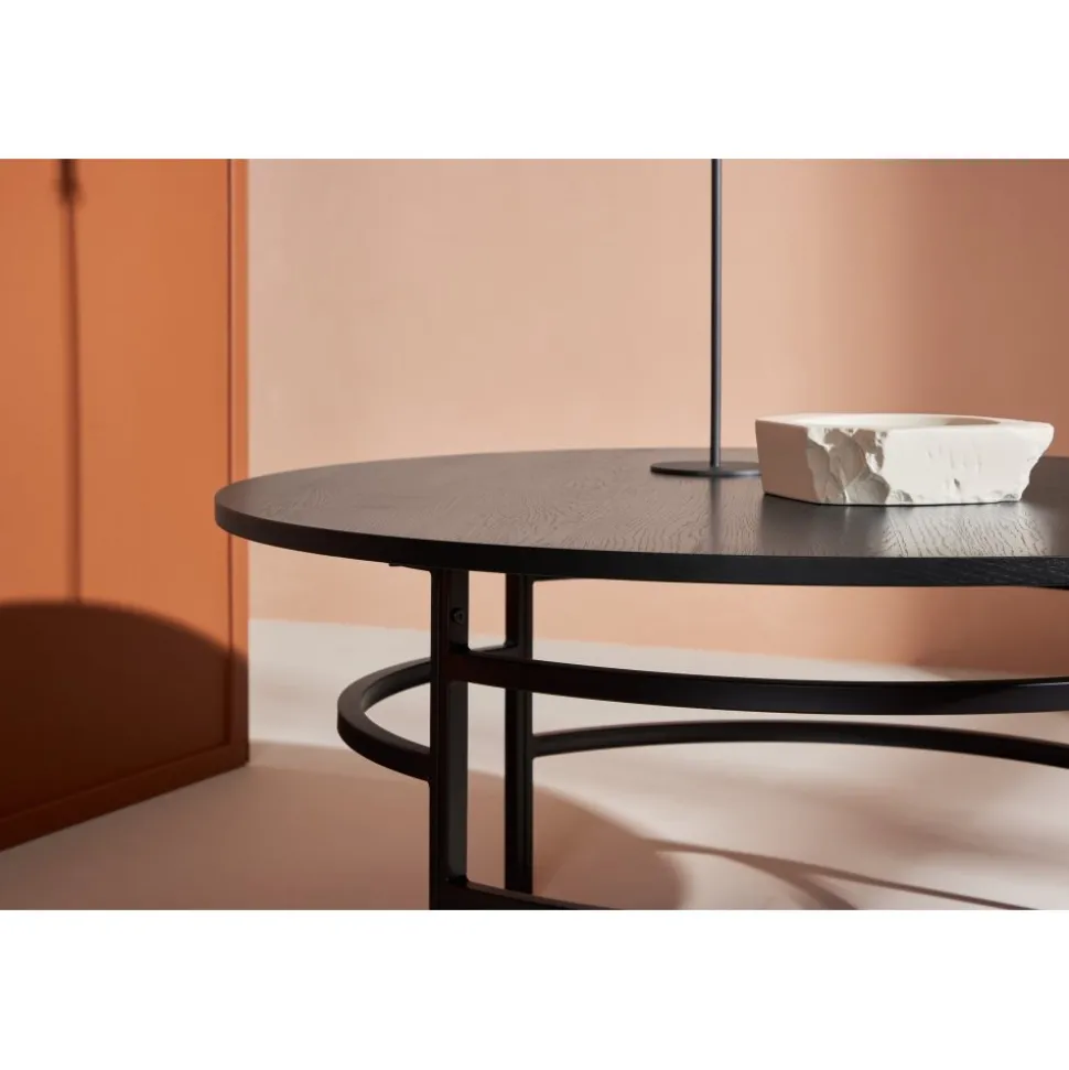 Förhöj ditt med soffbordet Copenhagen, en elegant och modern möbel som kombinerar enkelhet med sofistikerad design. Med sin djupa svarta färg och en generös diameter på 100 cm blir Copenhagen ett iögonfallande och funktionellt inslag i din inredning. Den runda formen på bordet skapar en inbjudande atmosfär och uppmuntrar till sociala stunder, där alla kan samlas runt en central punkt. Den svarta färgen ger bordet en tidlös och stilren karaktär, vilket gör det enkelt att kombinera med olika inredningsstilar, från minimalistiskt till industriellt eller klassiskt elegant. Soffbordet Copenhagen är utformat för att vara både vackert och praktiskt. Den rymliga bordsskivan erbjuder gott om plats för dekorationer, böcker, kaffekoppar och andra vardagliga föremål, samtidigt som den robusta konstruktionen säkerställer hållbarhet och stabilitet. Med sitt stilrena utseende och den mångsidiga svarta färgen är soffbordet Copenhagen det perfekta valet för dig som vill skapa en modern och elegant känsla i ditt hem. Låt detta bli mittpunkten i ditt vardagsrum, där dess design och funktion möts i perfekt harmoni.