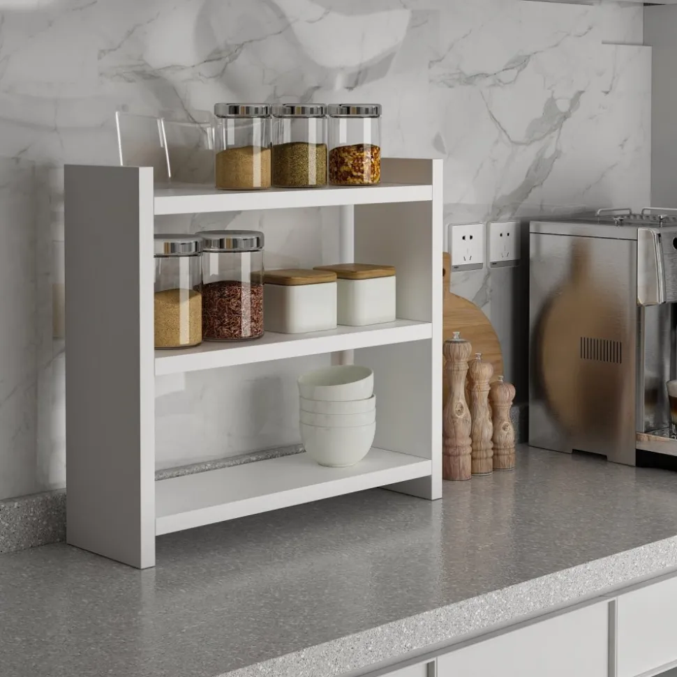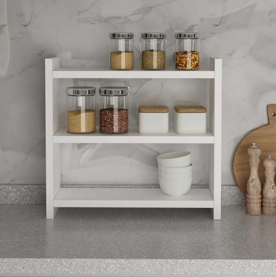 Kökshylla av melaminbelagd spånskiva.