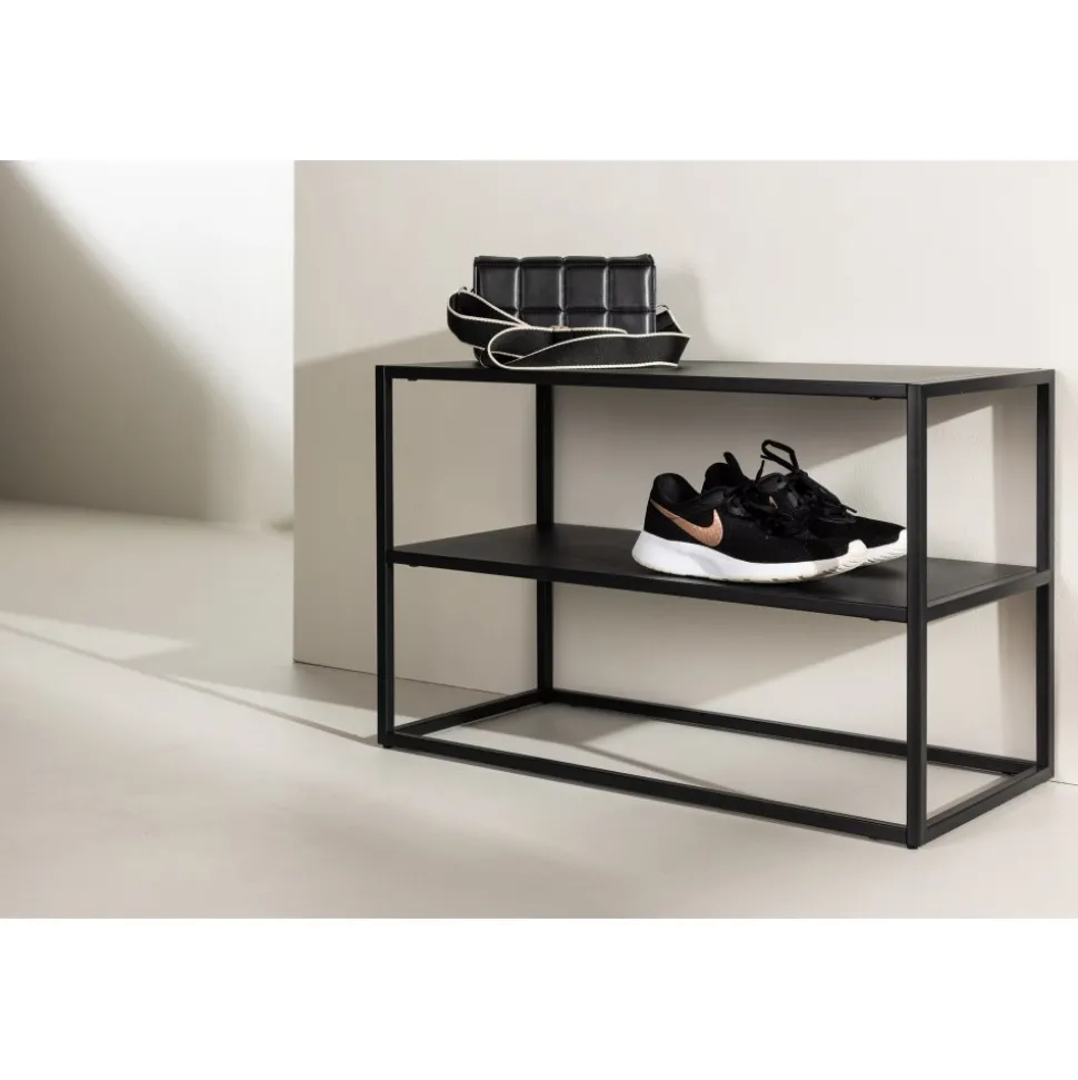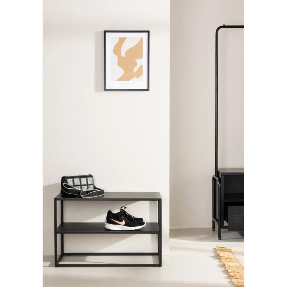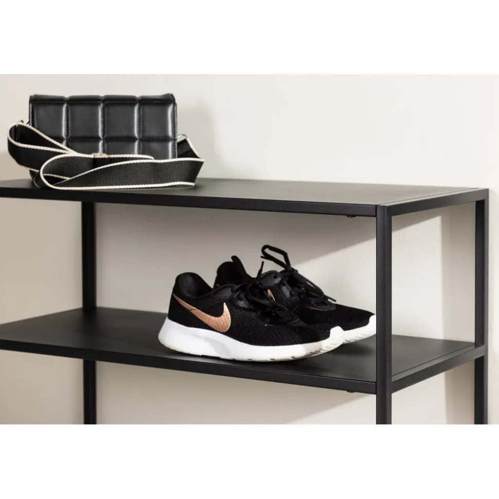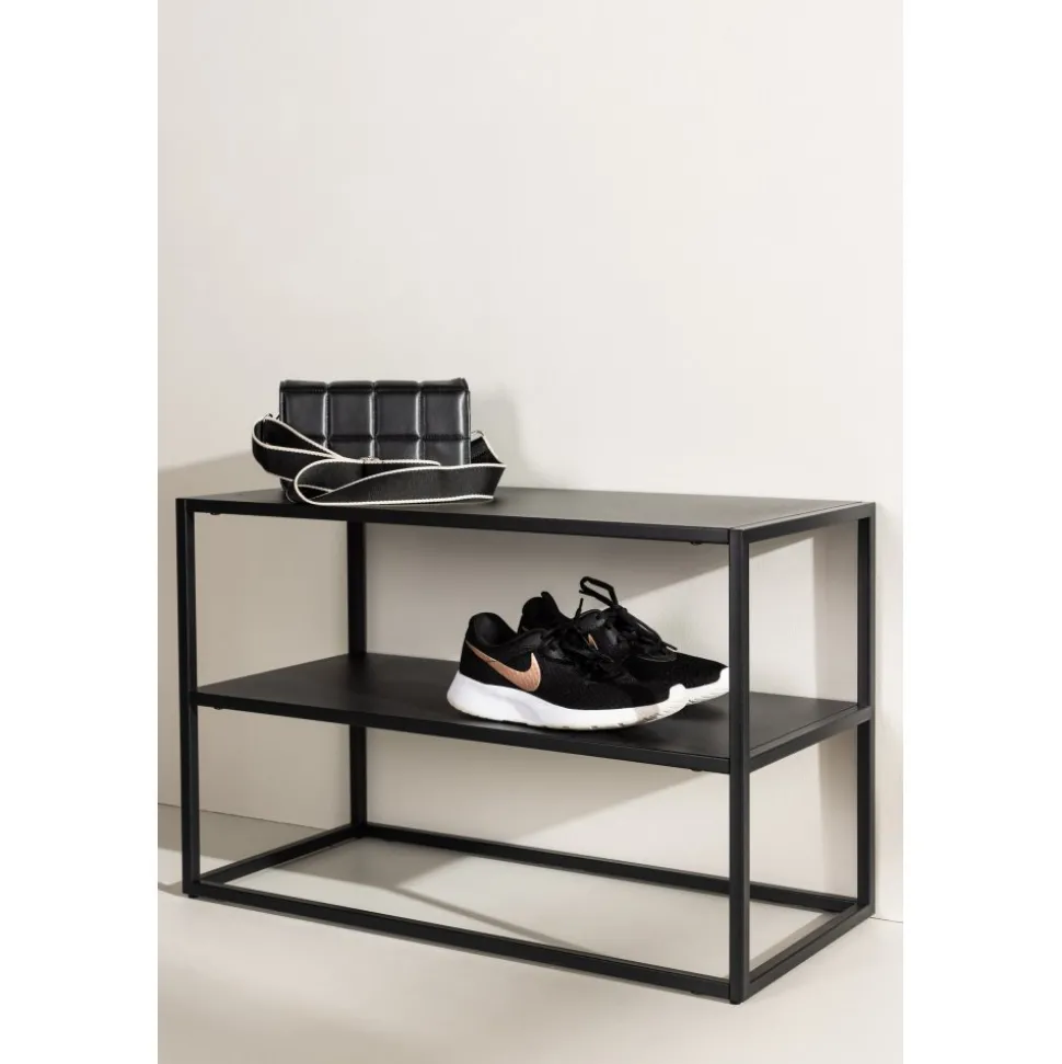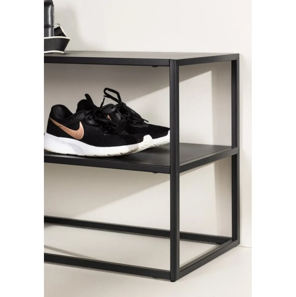 Vår underbara i skandinavisk stil från serien Curitiba! Om du letar efter den perfekta balansen mellan stil och praktisk förvaring så har du hittat rätt. Den här pulverlackerade skohyllan i svart metall är den ultimata lösningen. Med sin rektangulära design och öppna hyllplan ger det inte bara ett modernt intryck utan också plats för stilren förvaring. Curitiba är både stilren och mångsidig. Håll allt inom räckhåll samtidigt som du behåller en snygg och välorganiserad atmosfär. Den minimalistiska utformningen smälter dessutom sömlöst in i alla rum i ditt trendiga hem. Skapa en inbjudande atmosfär i ditt hem med en skohylla som kombinerar funktionalitet med skandinavisk elegans på allra bästa sätt. Välkommen till ett mer organiserat och vackert hem! Levereras omonterad.