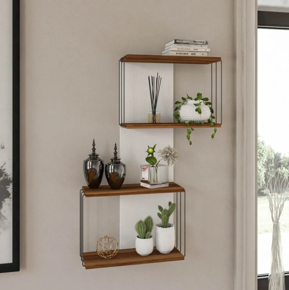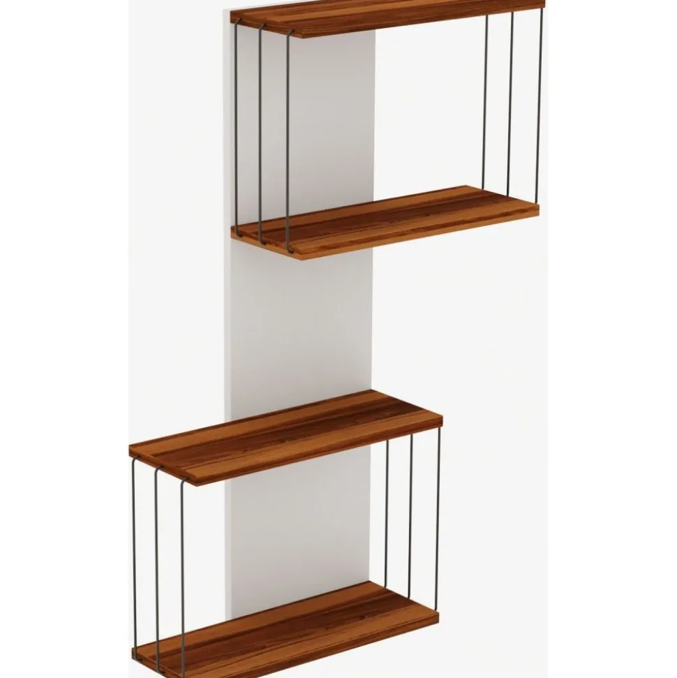Vägghylla av melaminbelagd spånskiva.