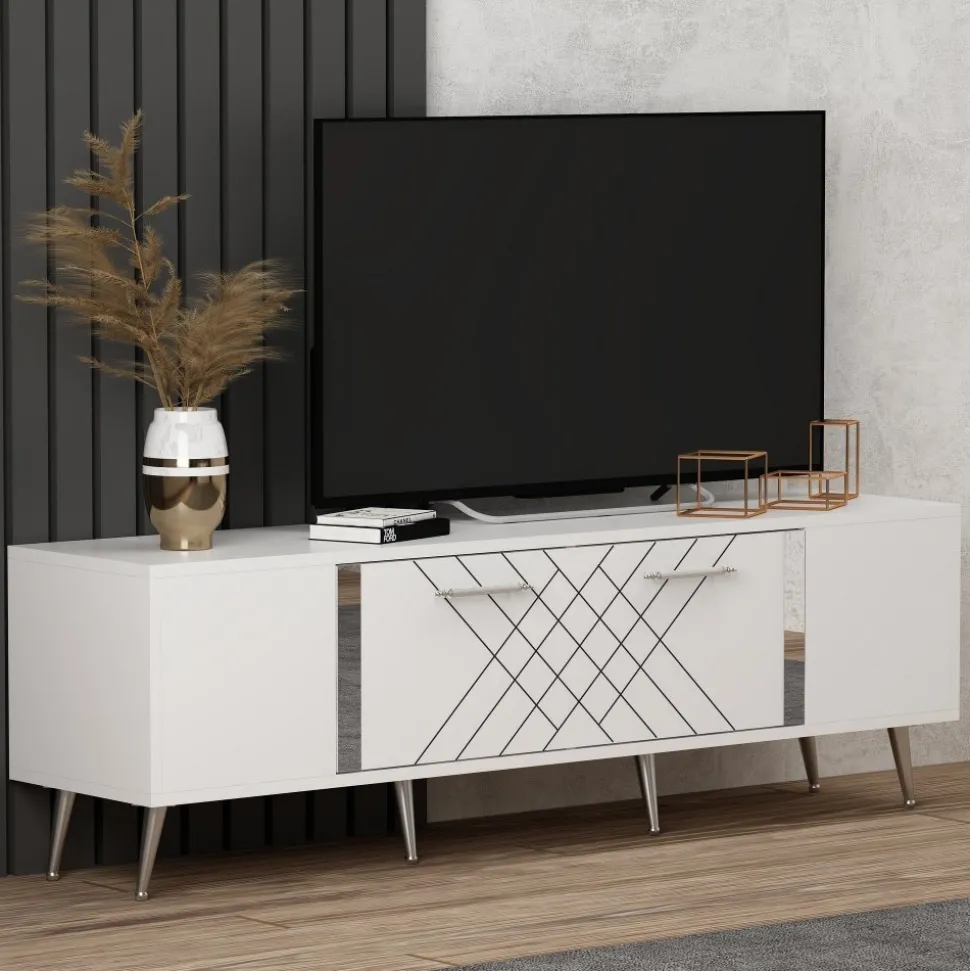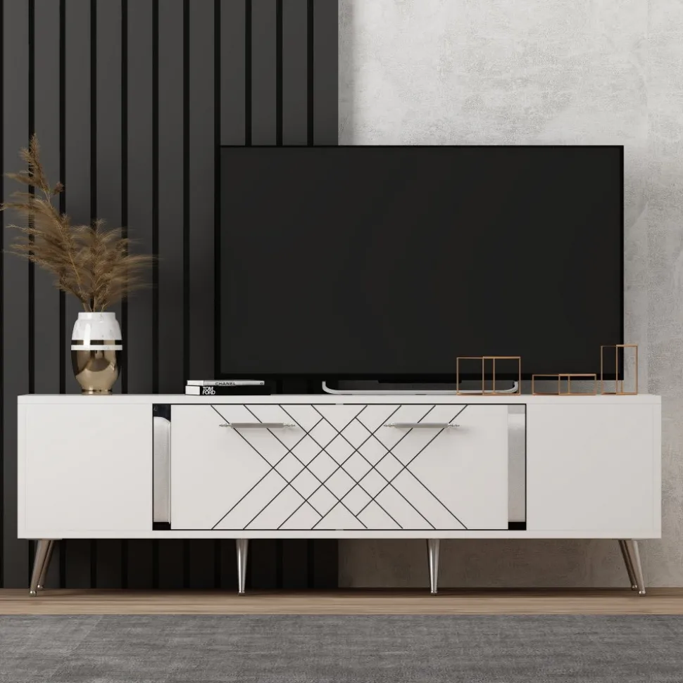 Mediabänk av melaminbelagd spånskiva.