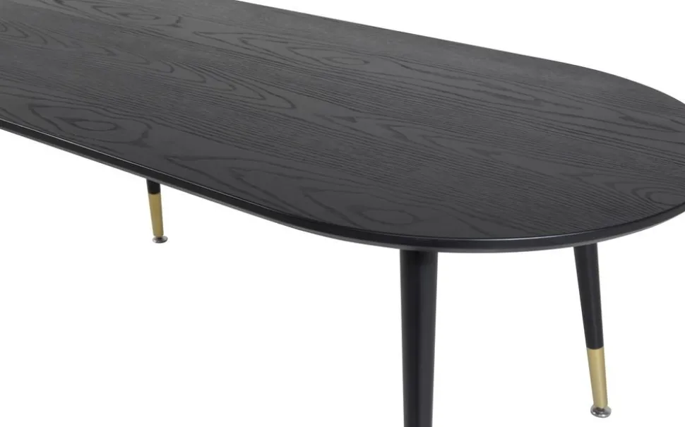 Modernt i svart med toppskiva av fanér och mässingsdetaljer nertill på benen.