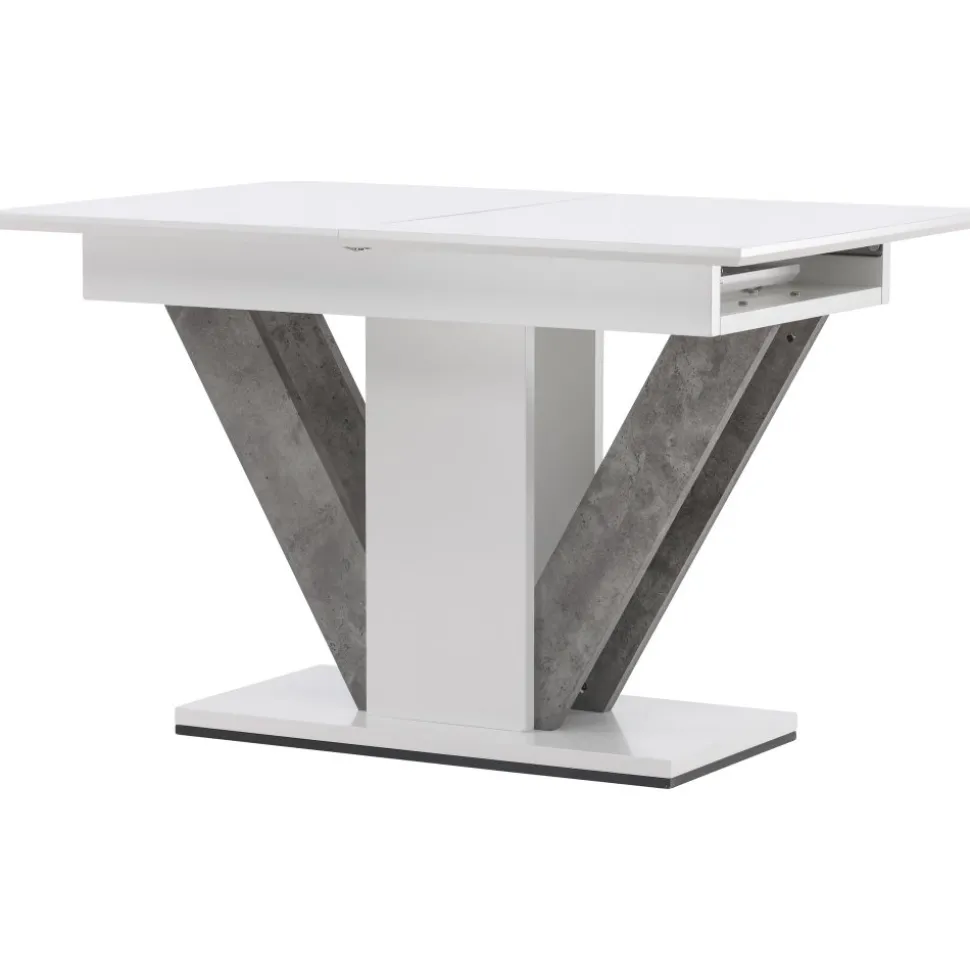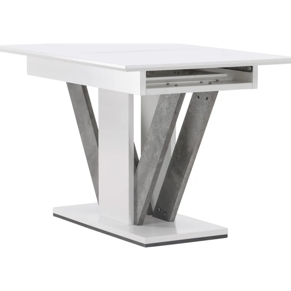 Elegant och pampigt med bordsskiva i MDF. Robust, centrerat underrede med detaljer i grå MDF. Bordet är förlängningsbart vilket gör att det lämpar sig utmärkt både till små och stora sällskap. Bjud in till många sociala stunder framöver!