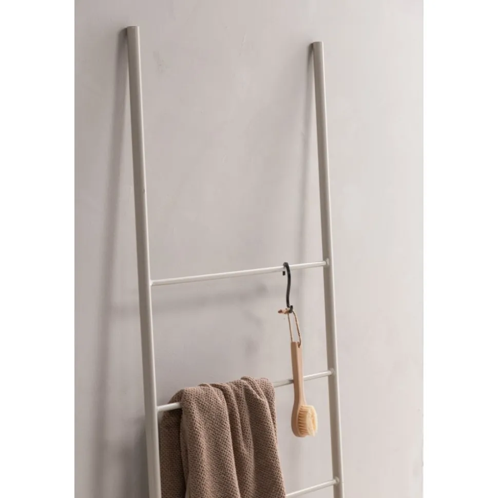 Slipp kompromissa mellan praktiska lösningar och iögonfallande stil. Den här stegen kräver inga borrhål utan lutas bara enkelt mot väggen och erbjuder dig en snygg inredningsdetalj samtidigt som den möjliggör smart förvaring. Den smala konstruktionen är tillverkad i greige metall och har en minimalitsik design.