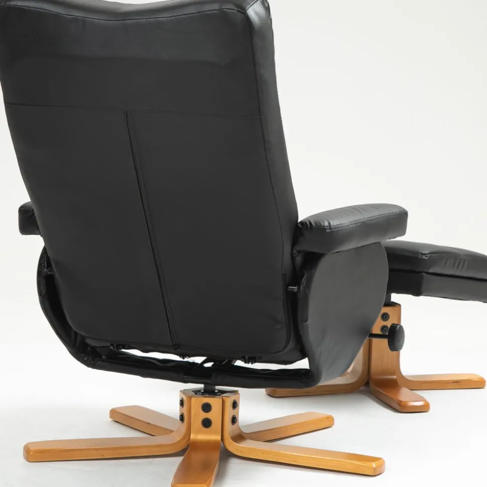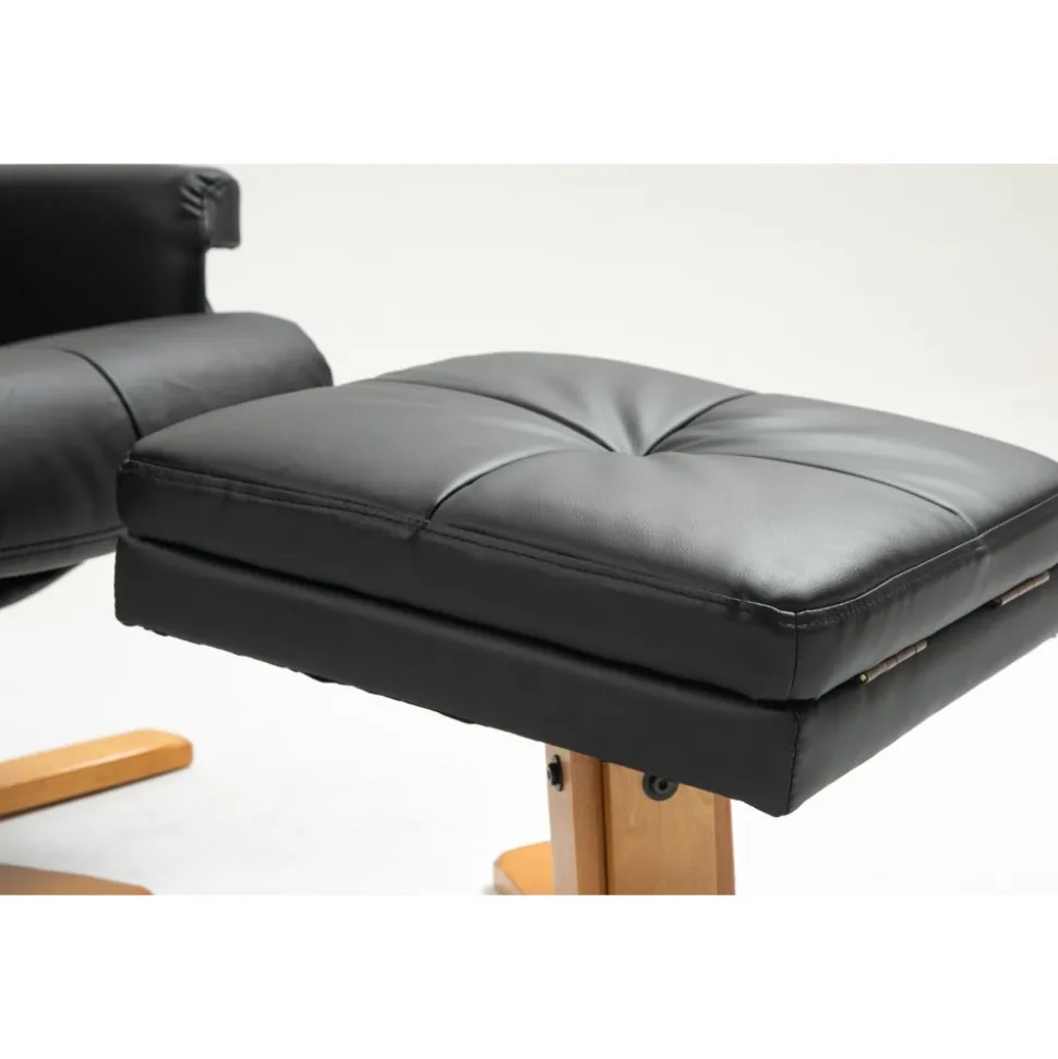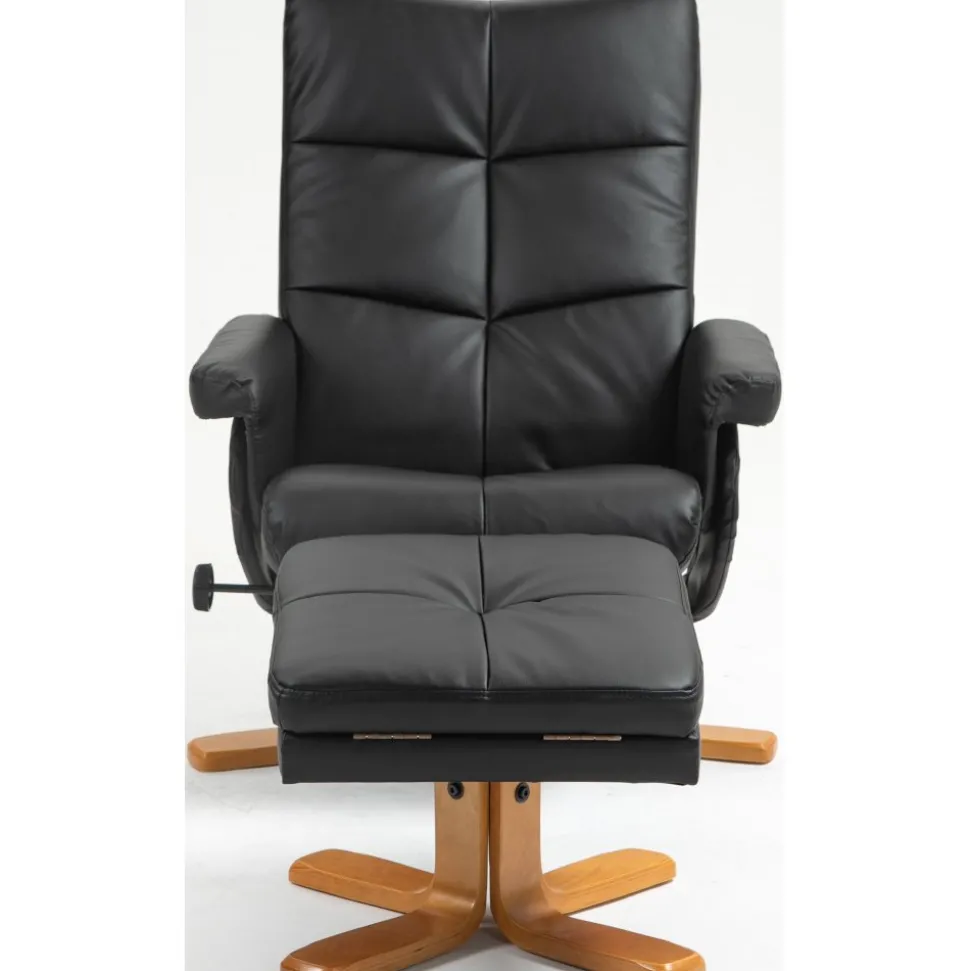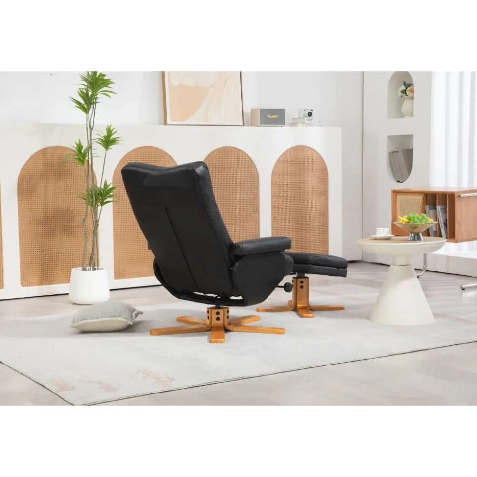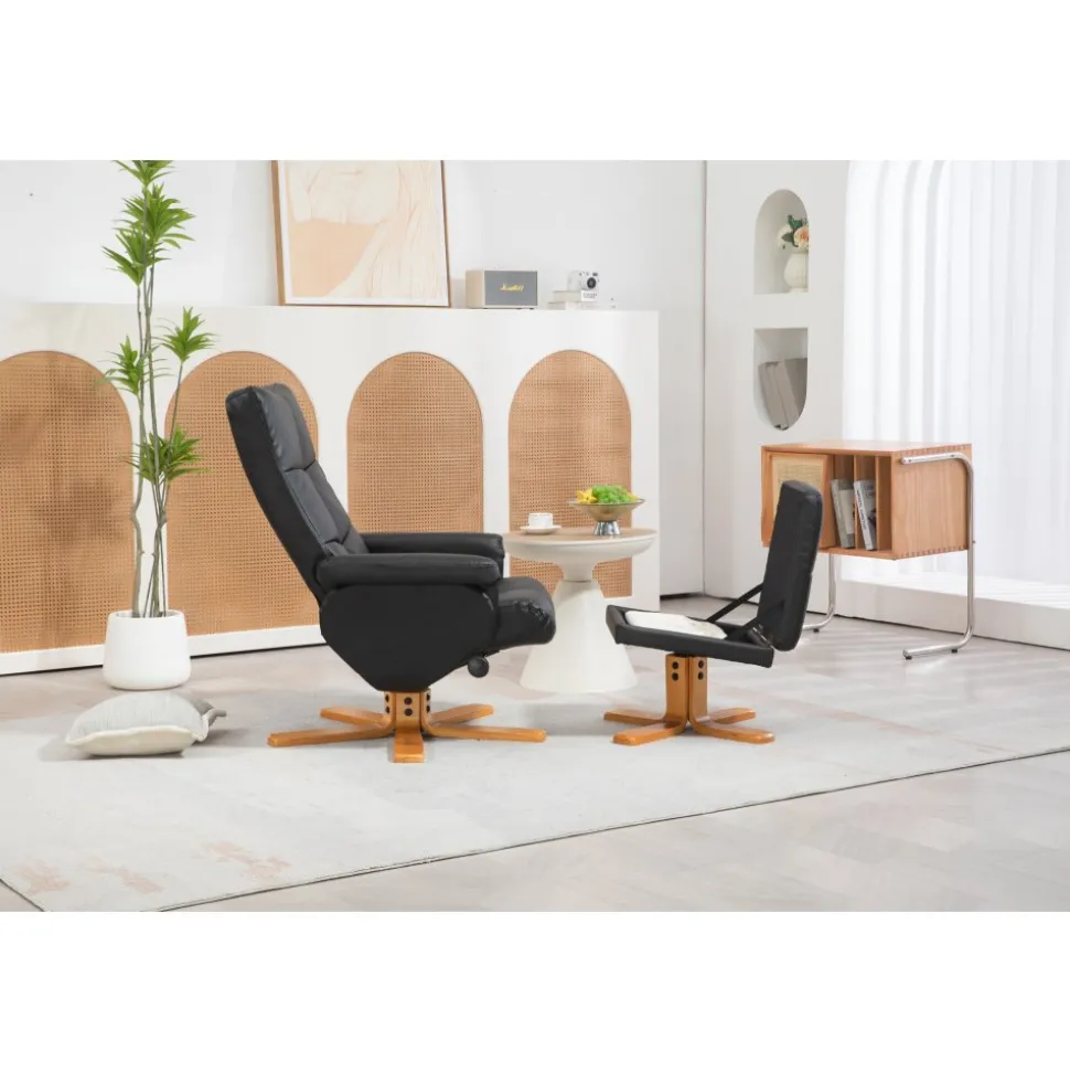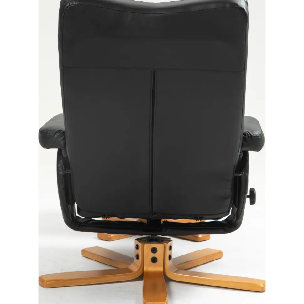 Duva reclinerfåtölj med fotpall i svart PU med bruna ben + Textilrengöring för möbler
