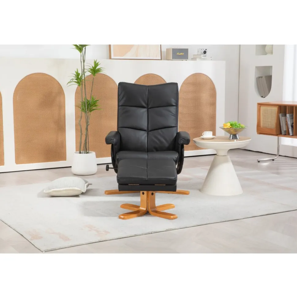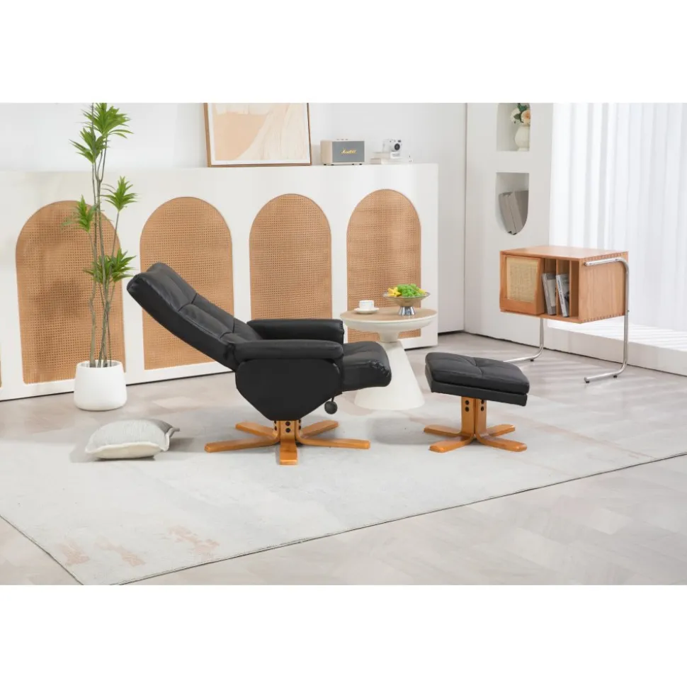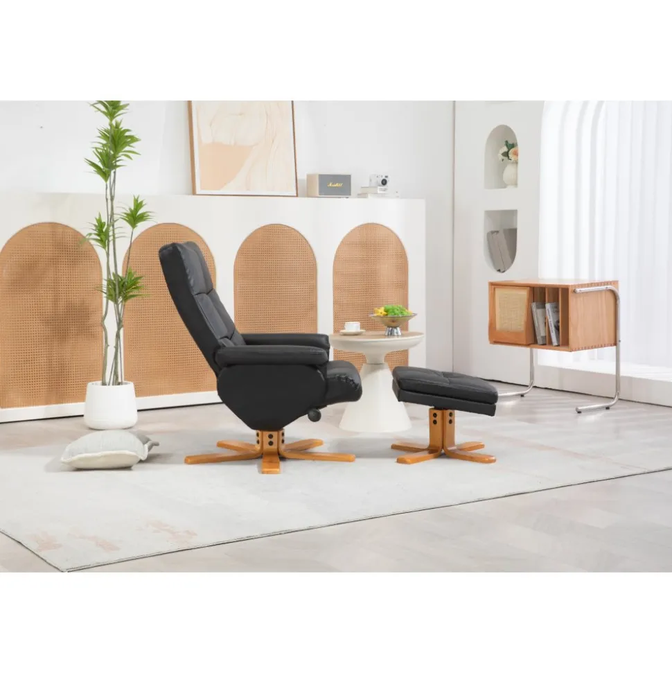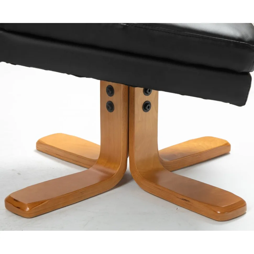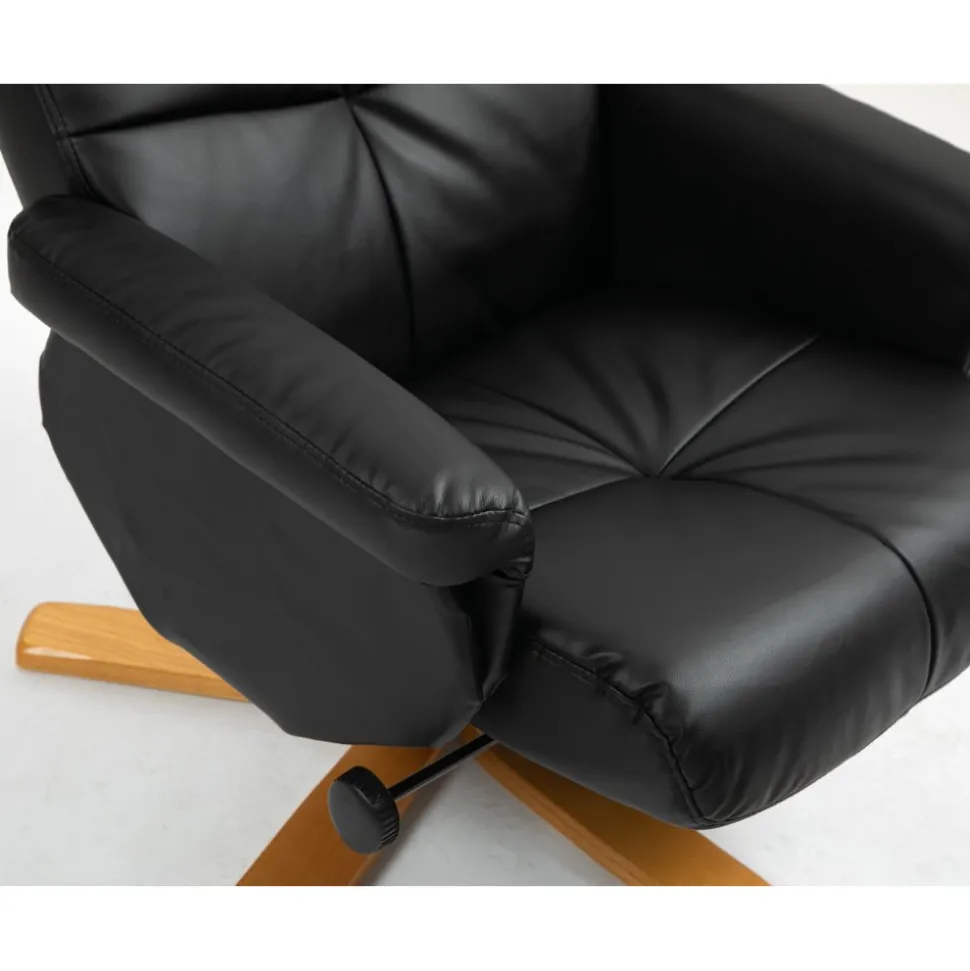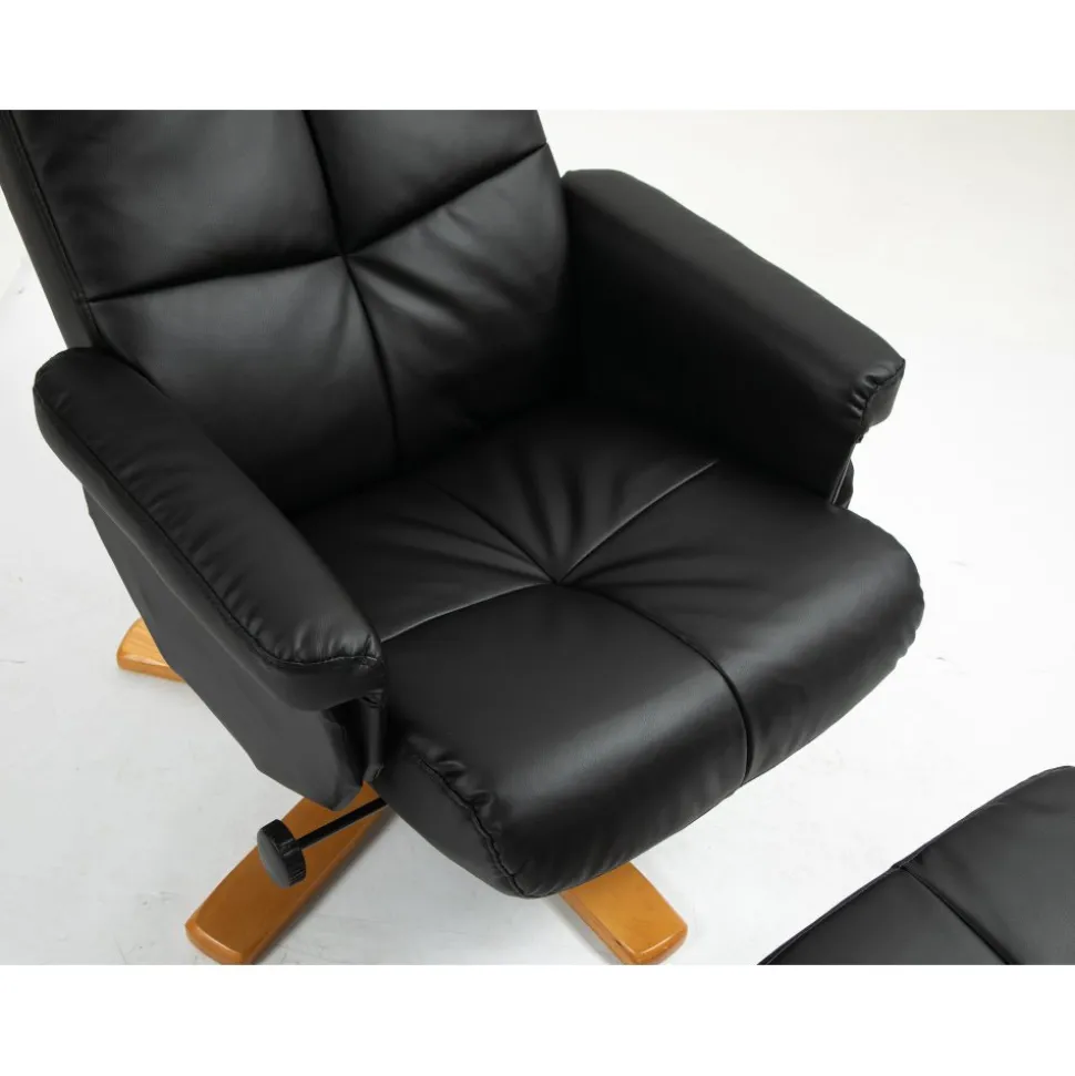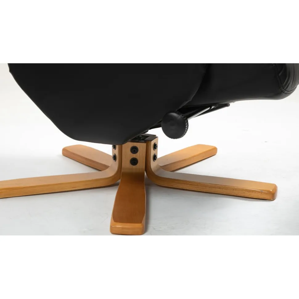 Duva reclinerfåtölj med fotpall i svart PU med bruna ben + Textilrengöring för möbler