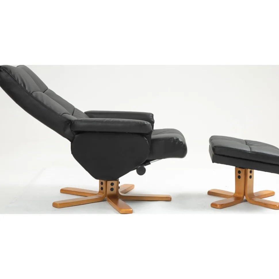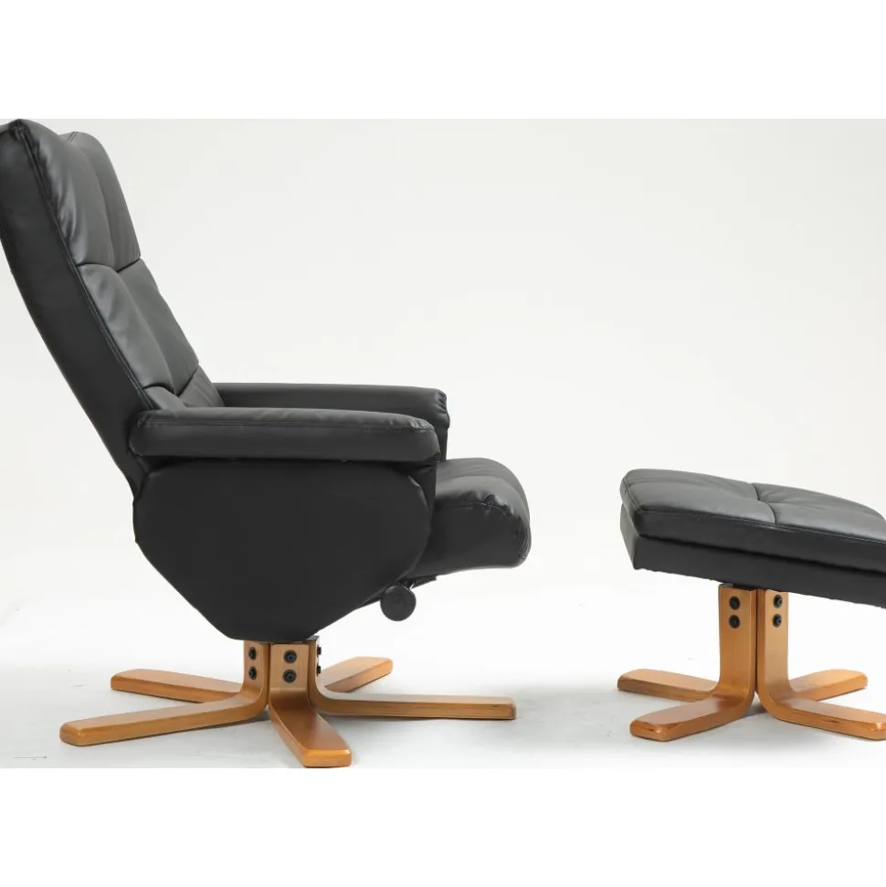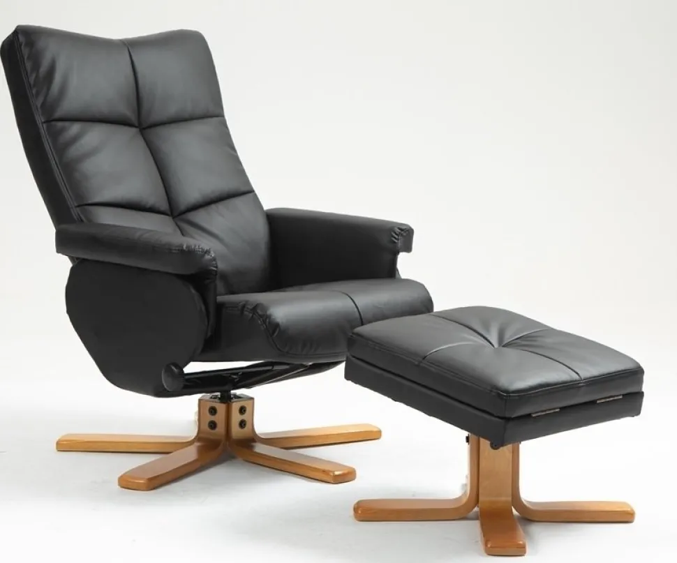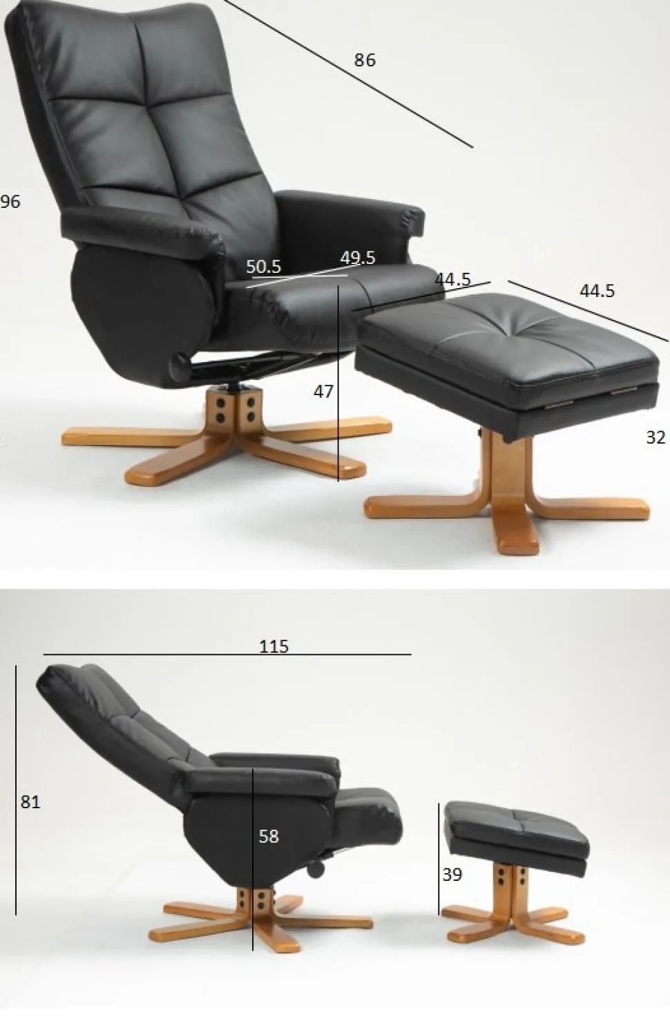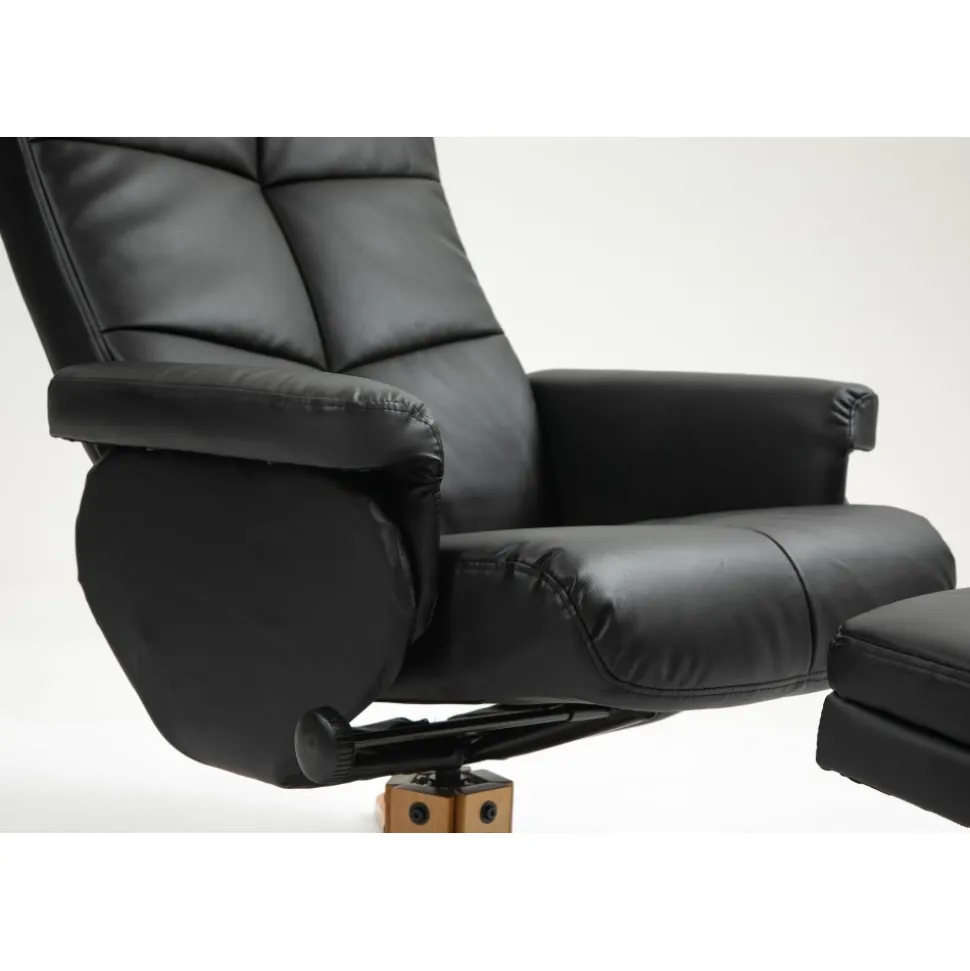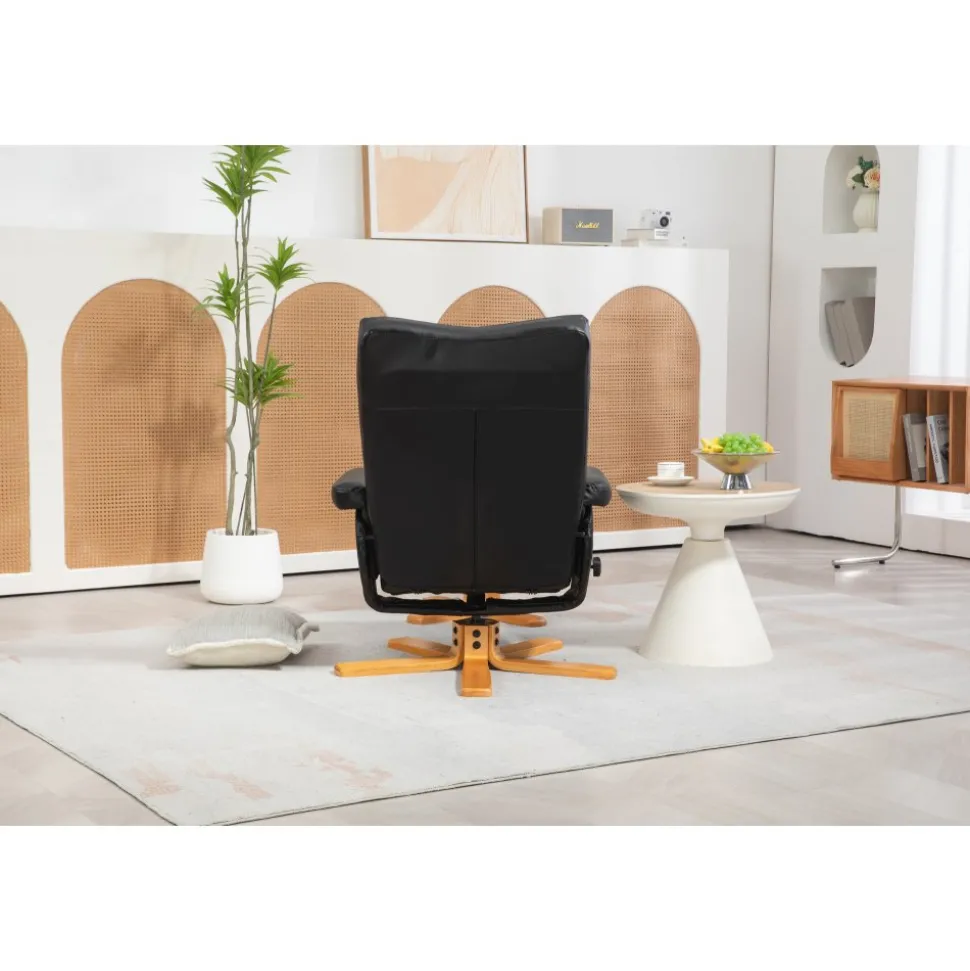 Duva reclinerfåtölj med fotpall i svart PU med bruna ben + Textilrengöring för möbler
