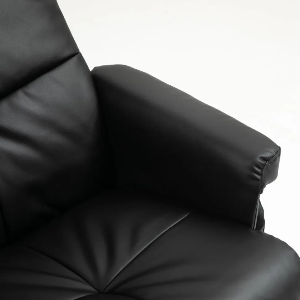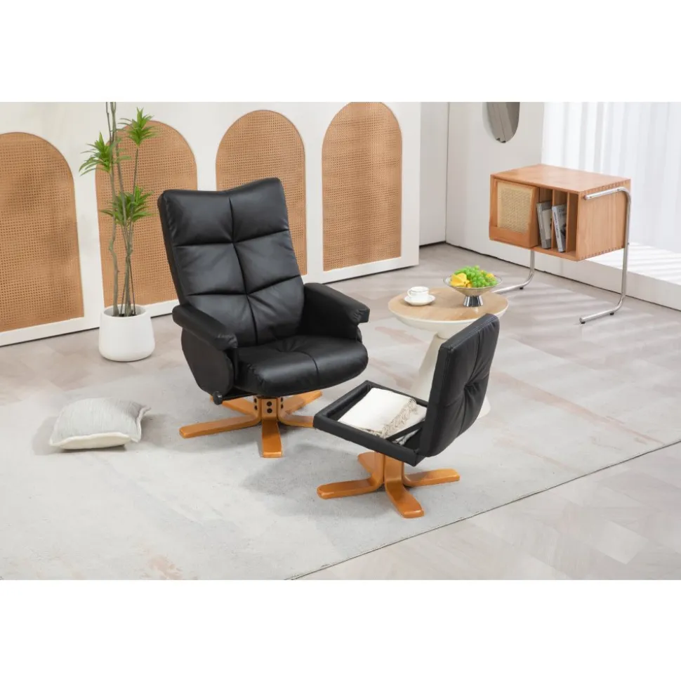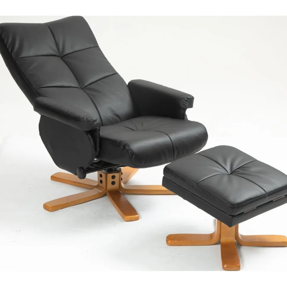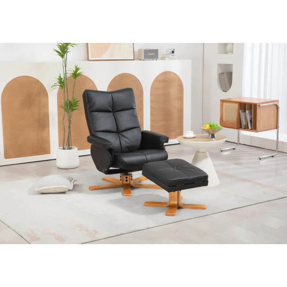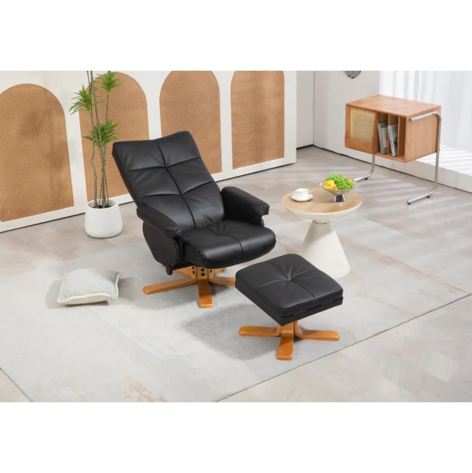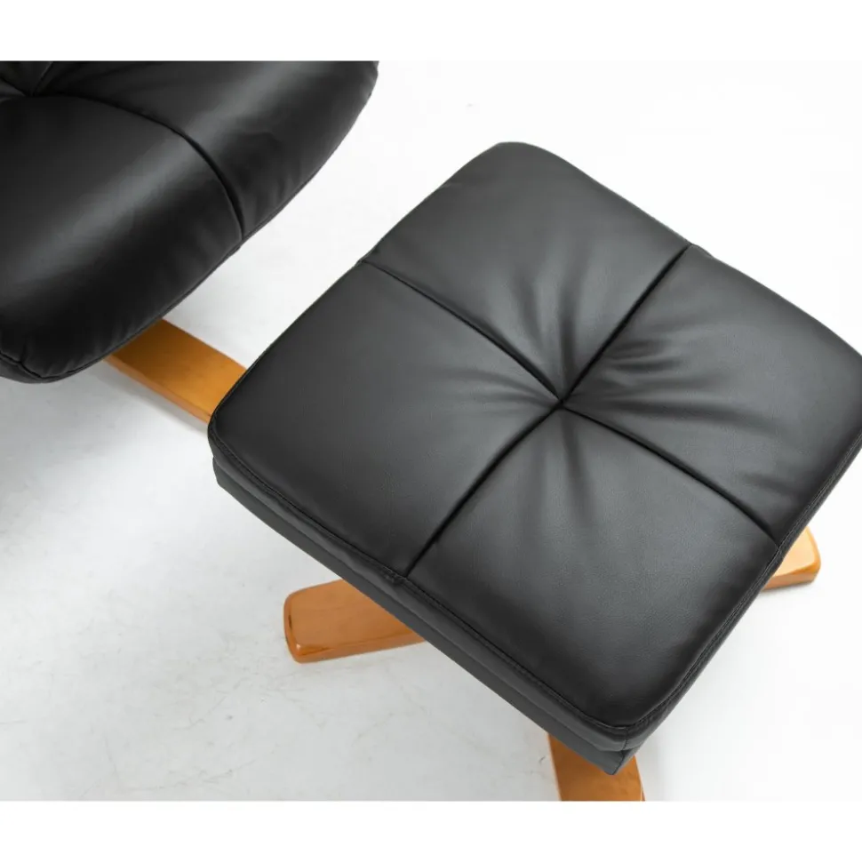 Duva reclinerfåtölj med fotpall i svart PU med bruna ben + Textilrengöring för möbler