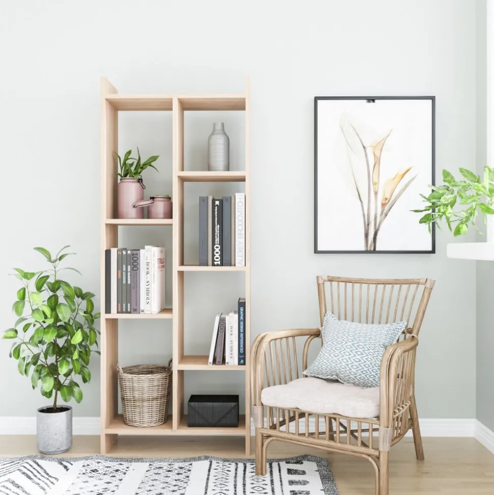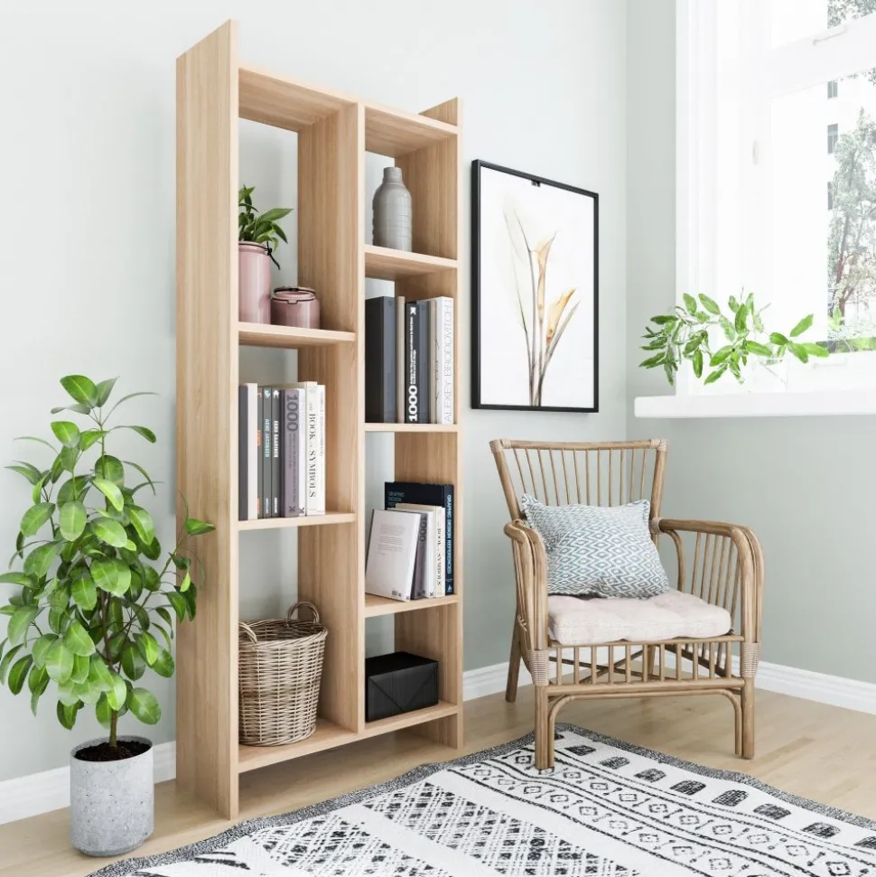Bokhylla av melaminbelagd spånskiva.