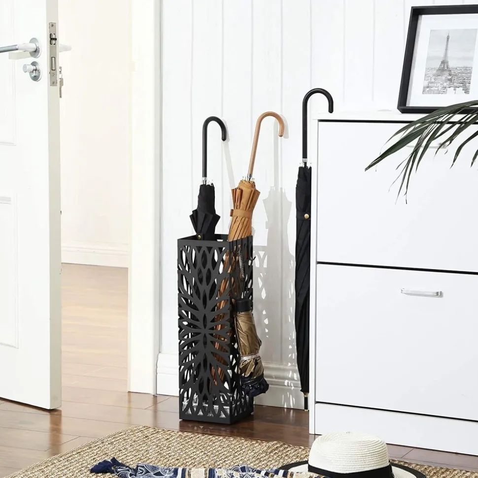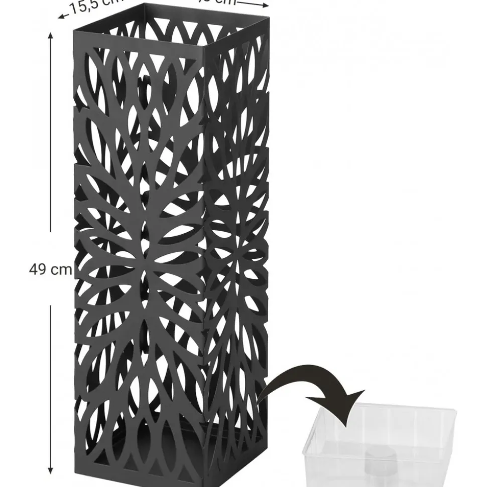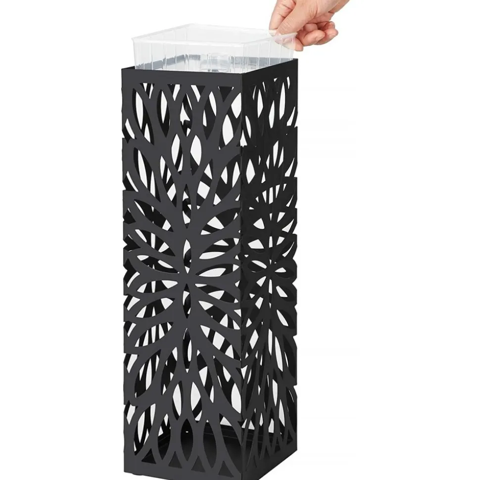 Paraplyställ av stål med droppbricka av plast.