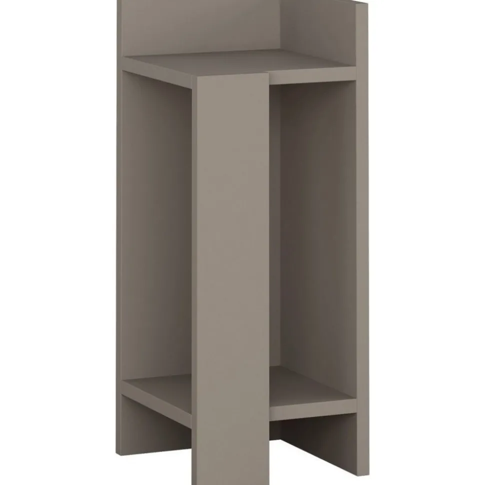 Sängbord av melaminbelagd spånskiva.