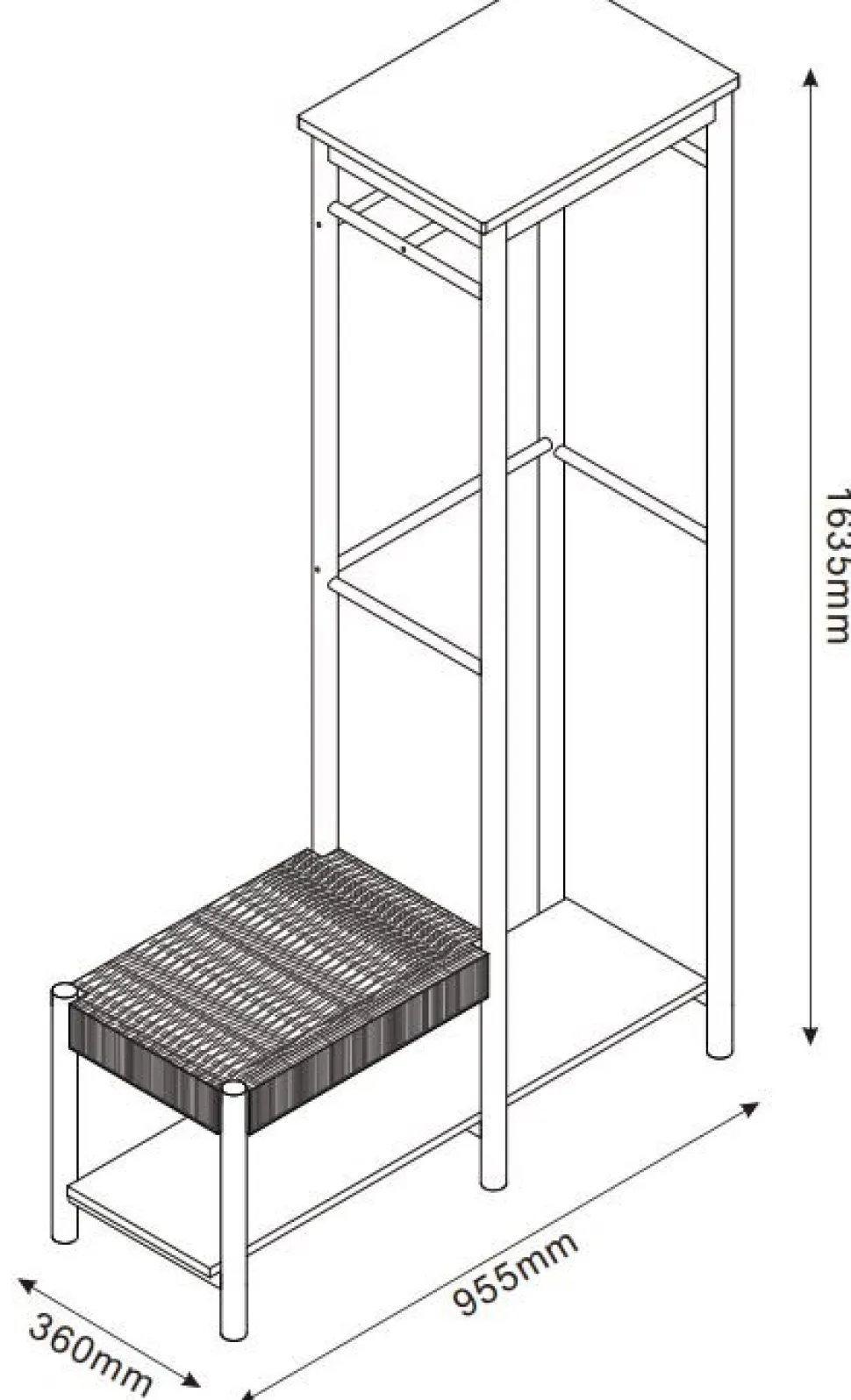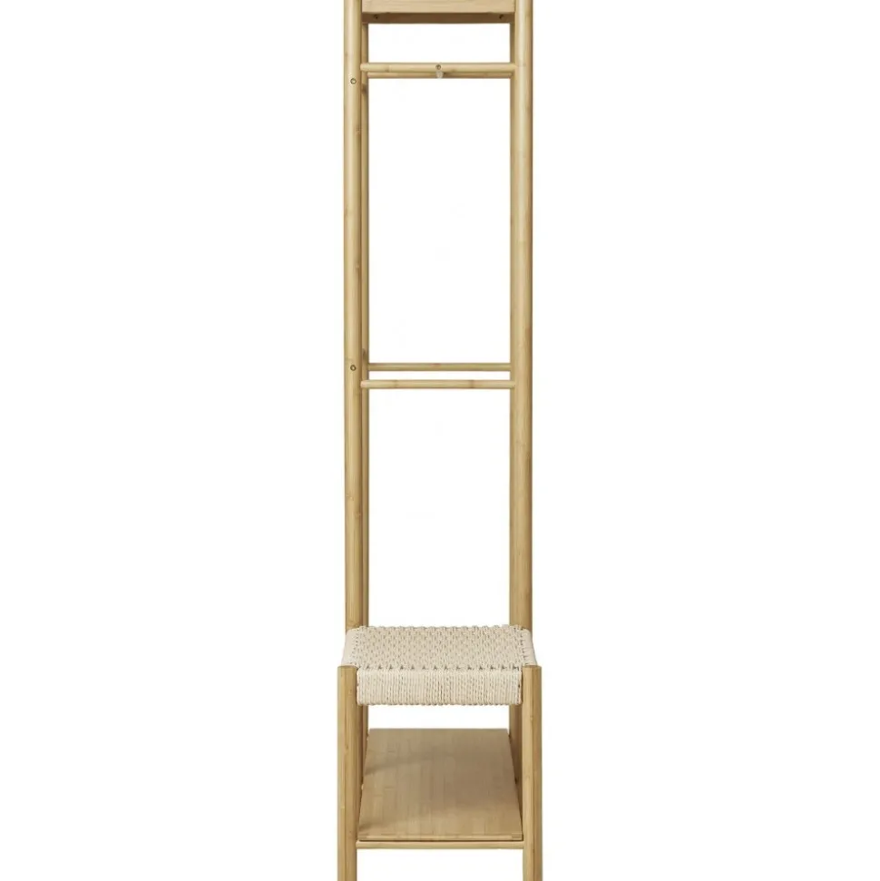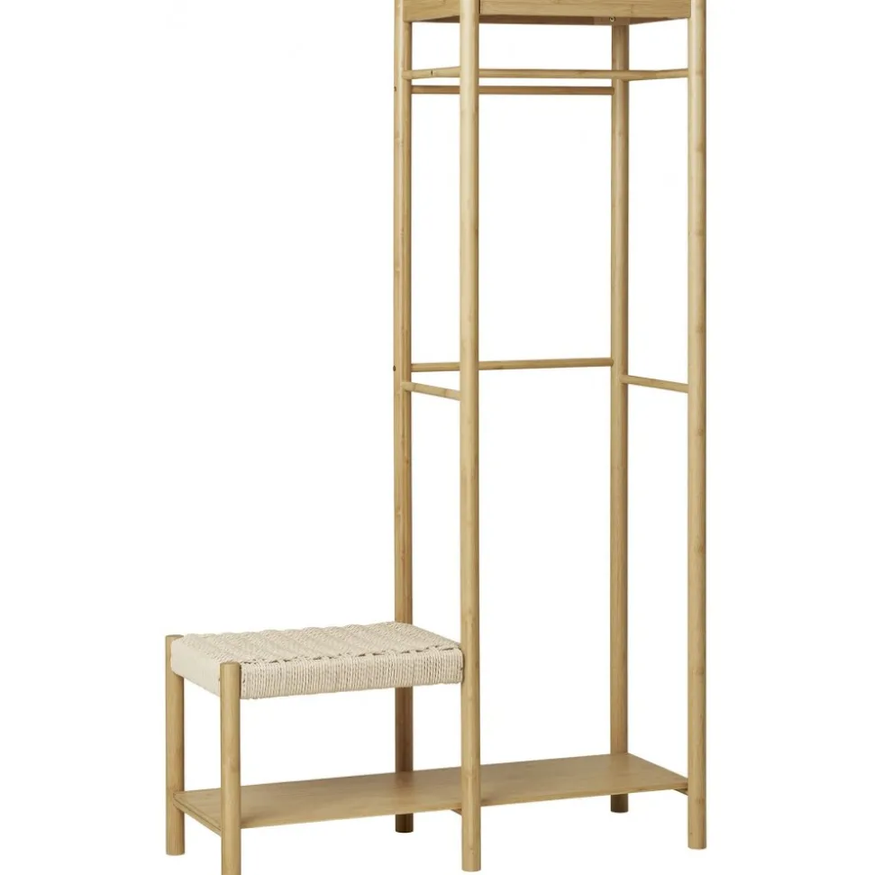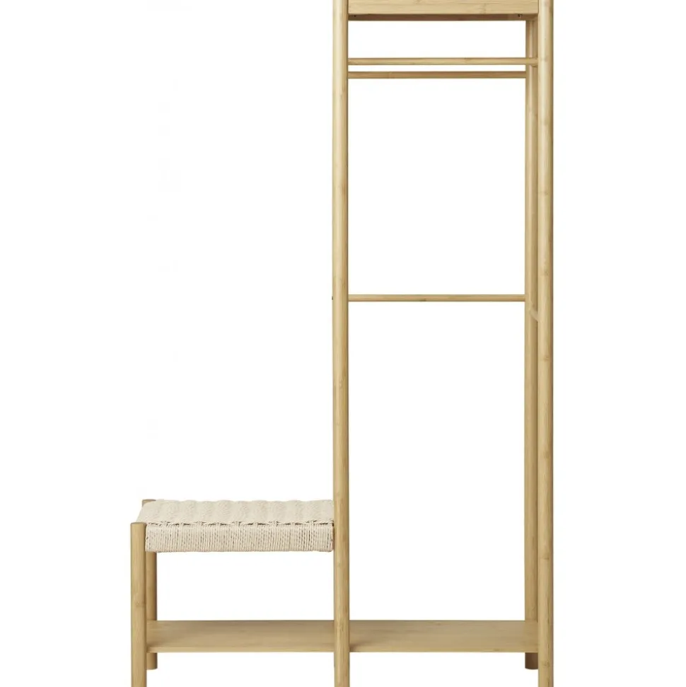 Hallmöbel av bambu. Sittyta med flätat pappersrep. Levereras omonterad.