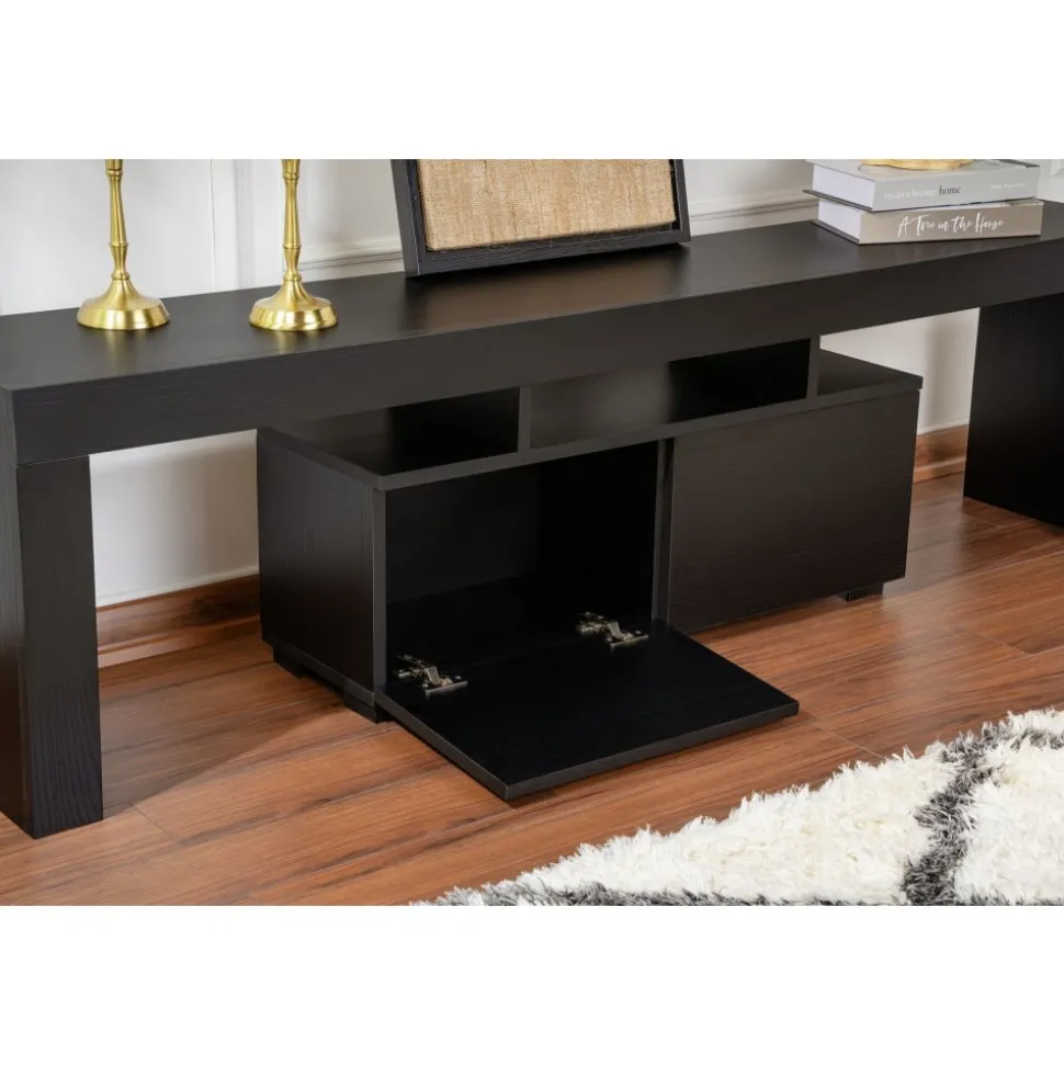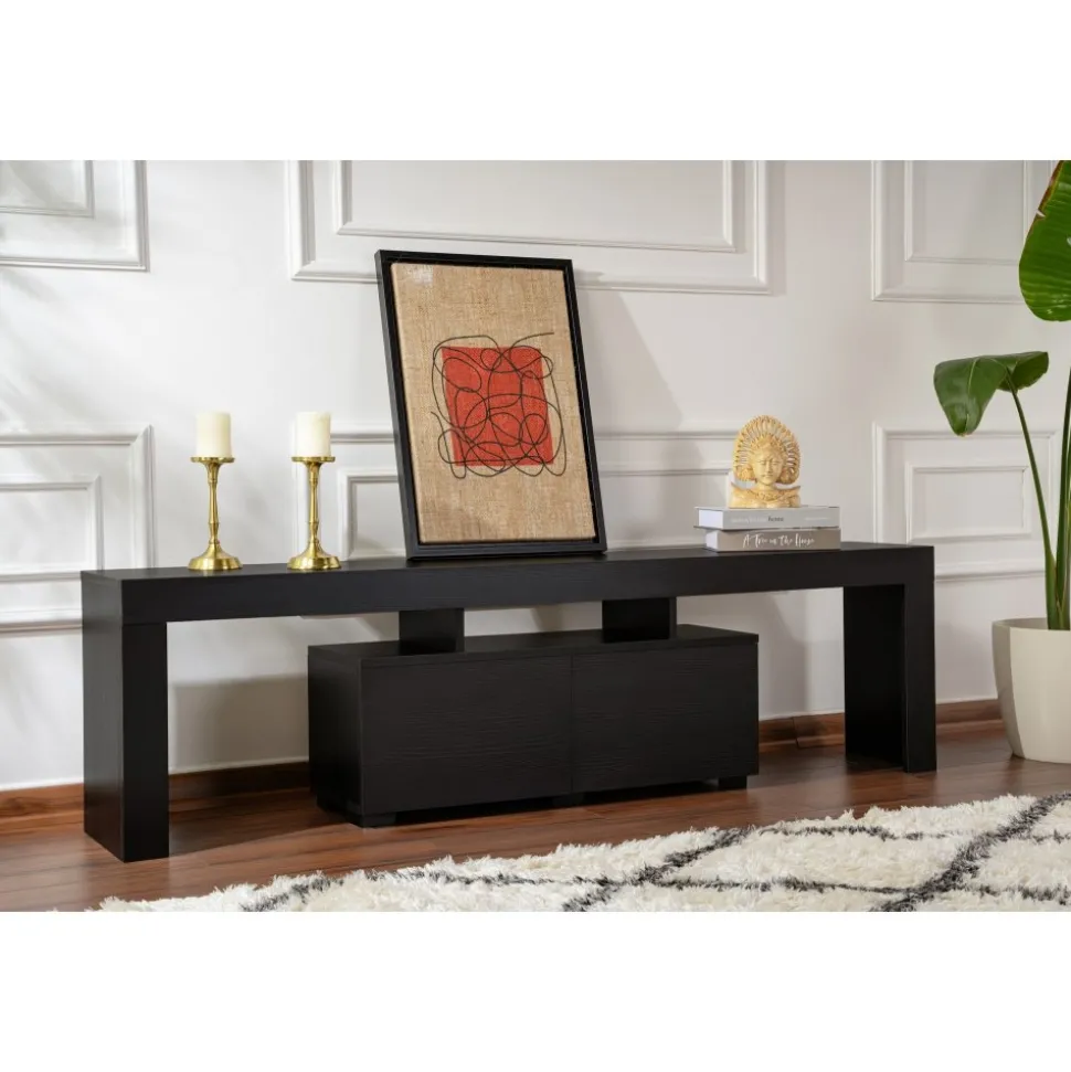 Mediabänk av melaminbelagd spånskiva.