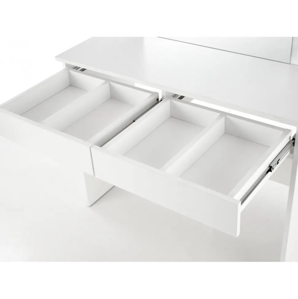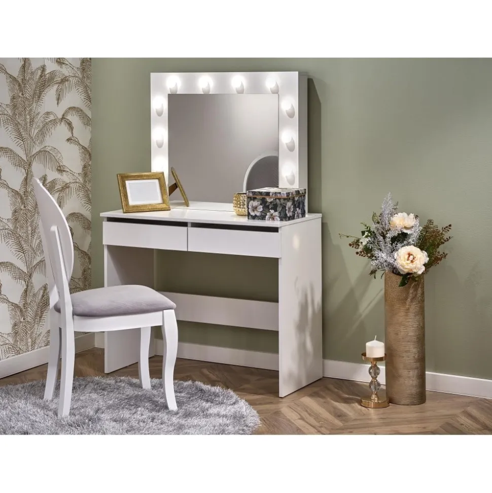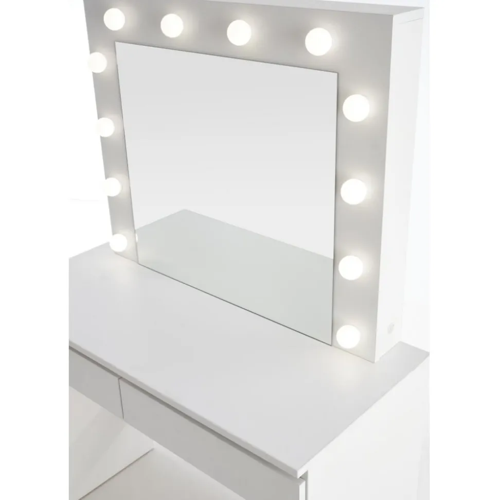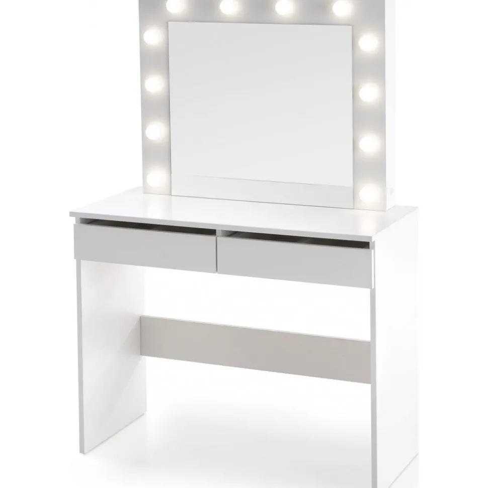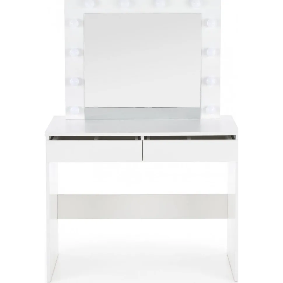 Sminkbord av fanérad spånskiva med LED-belysning.
