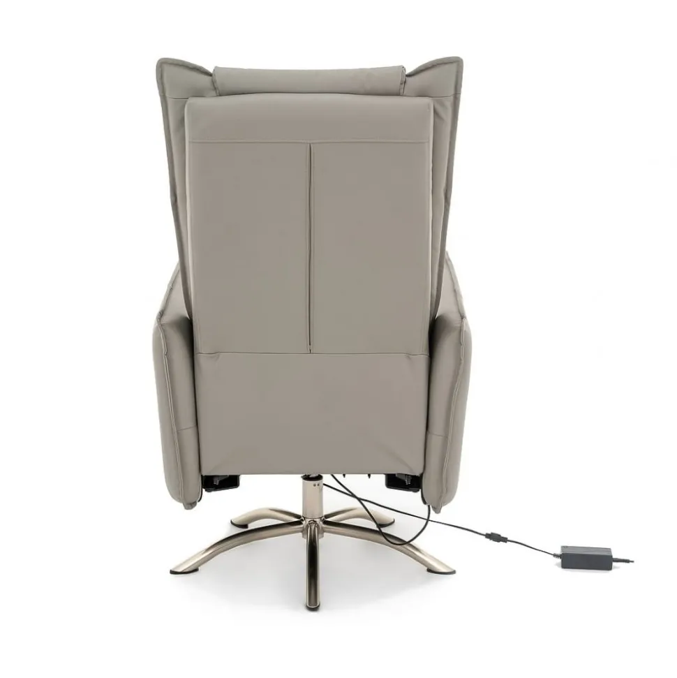 Modern och komfortabel eldriven . Klädd i ett läderliknande grått PU. Elektrisk enkel inställning till favorit position med hjälp av de två knapparna på sidan av fåtöljen.