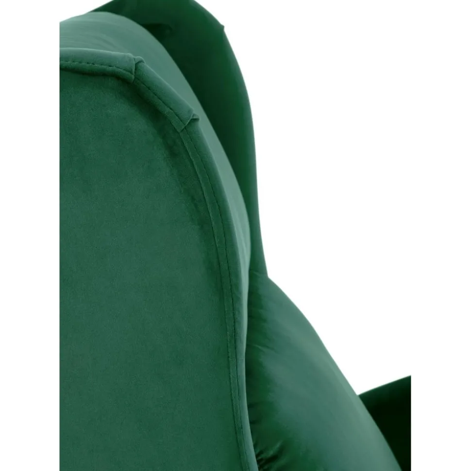 Reclinerfåtölj i ett mjukt grönt tyg med fällbar funktion.