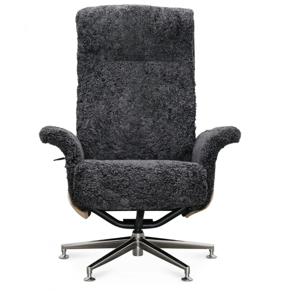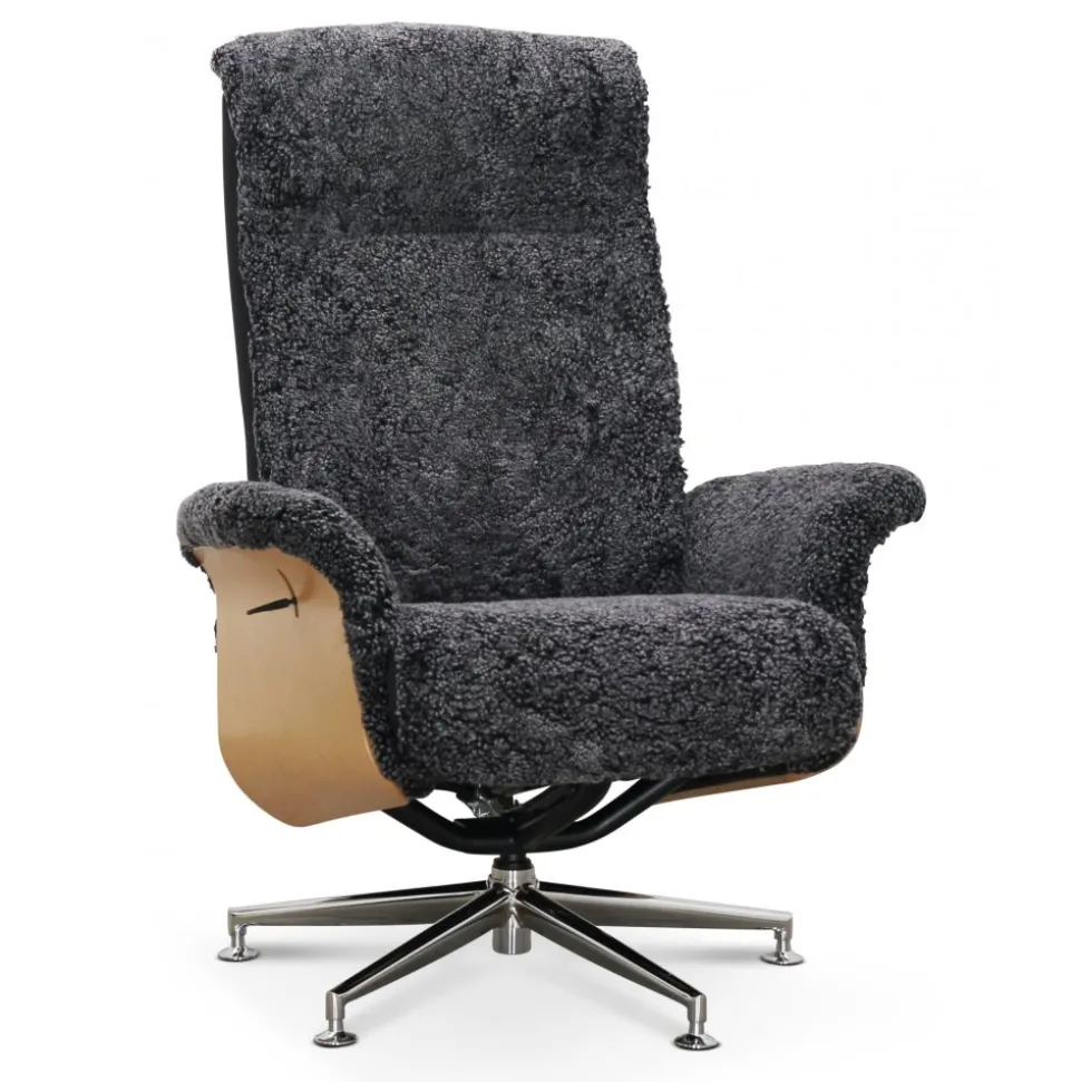 - Fåtölj med fotpall fårskinn ek/antracit – Ulla