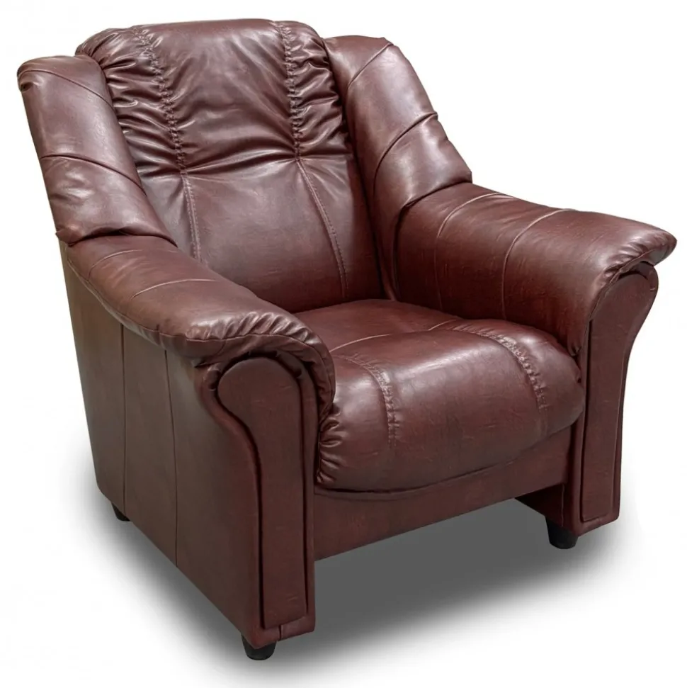 Klädseln är ett väl beprövat och hållbart oxblodsfärgat PU. Komplettera med både 2-sits och 3-sits soffa i samma modell.