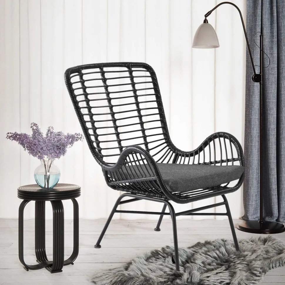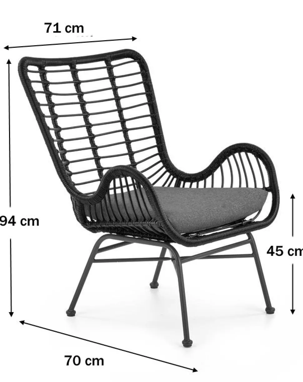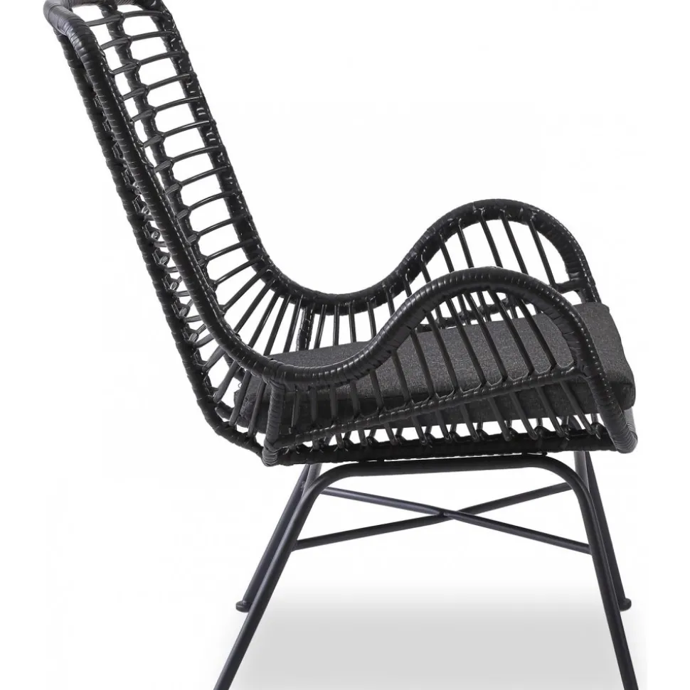 En stilfull och bekväm som kombinerar klassisk design med hållbara material. Tillverkad av slitstark med ett stabilt underrede i stål och en mjukt klädd sits för extra komfort. Perfekt för både uteplatsen och inomhusmiljöer.