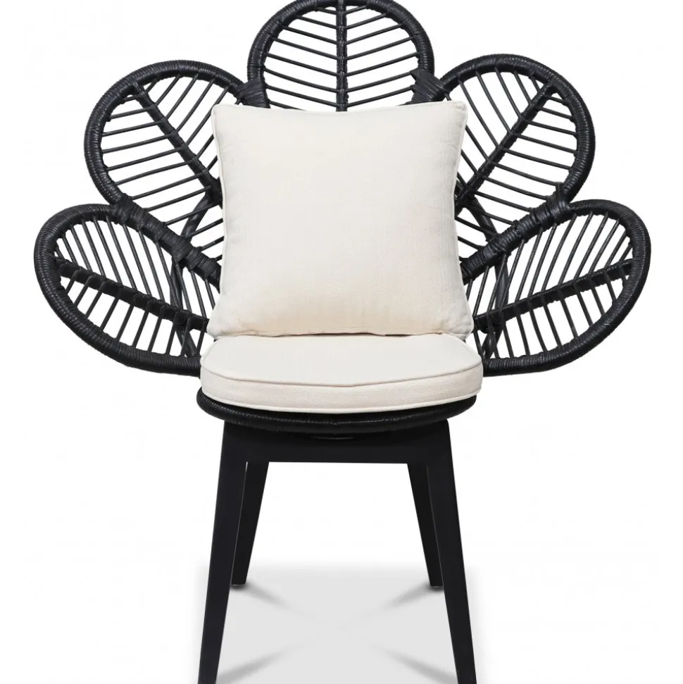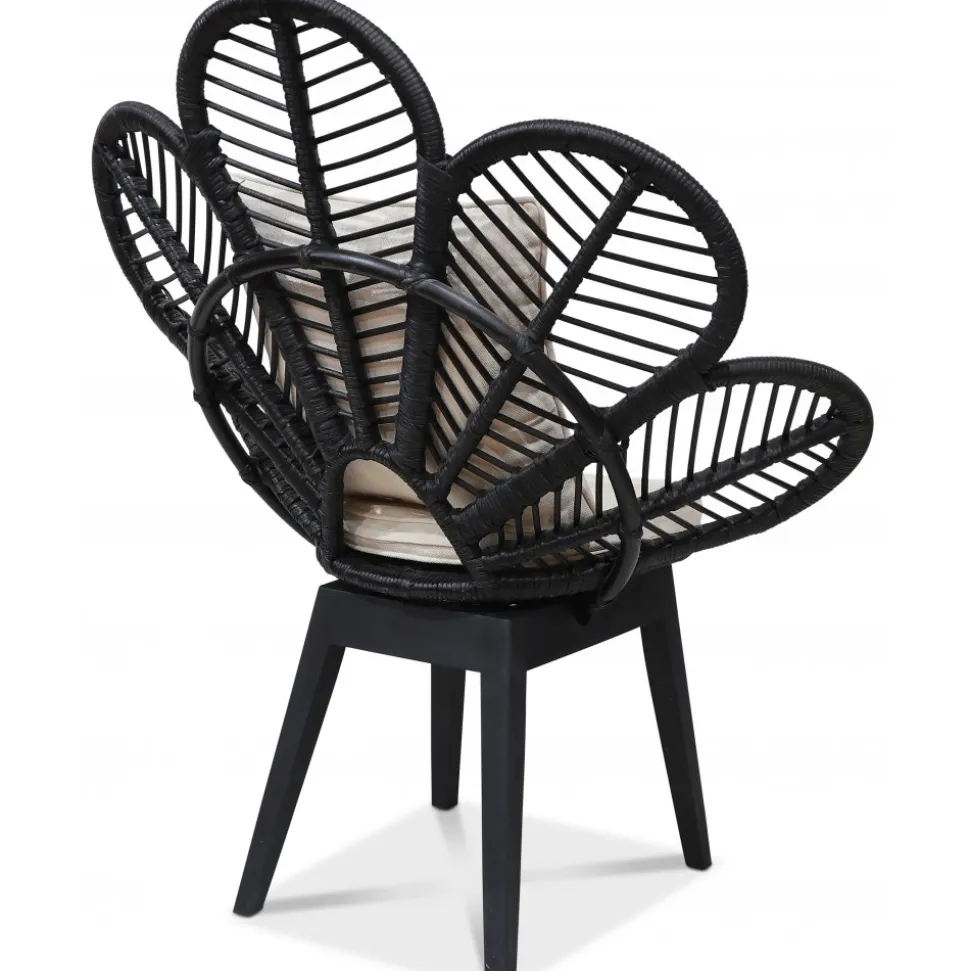 Peacock loungefåtölj i flätad och bunden i svartbetsad rotting. Fantastisk handarbete som alltid håller. Sitt och ryggdyna i ljust tyg.