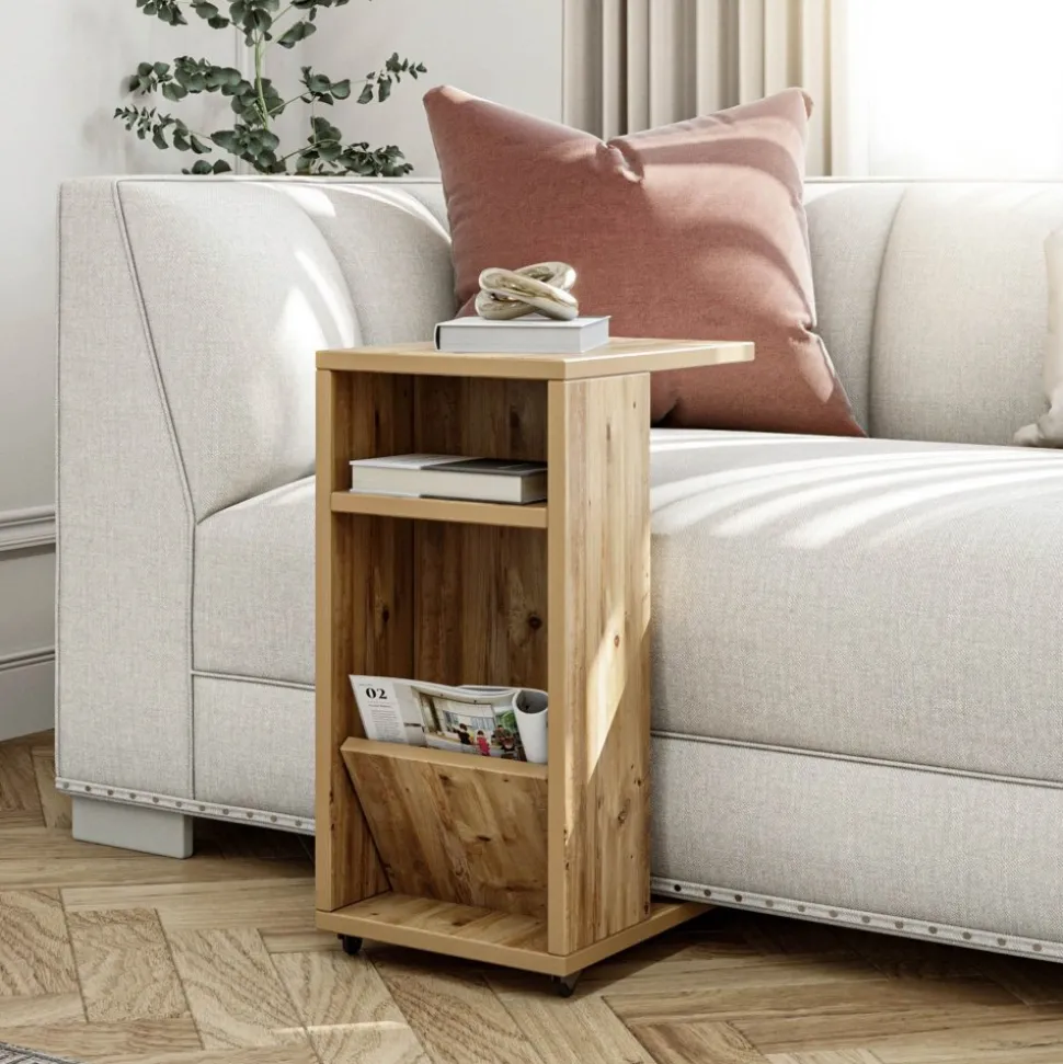 Sidobord av melaminbelagd spånskiva.