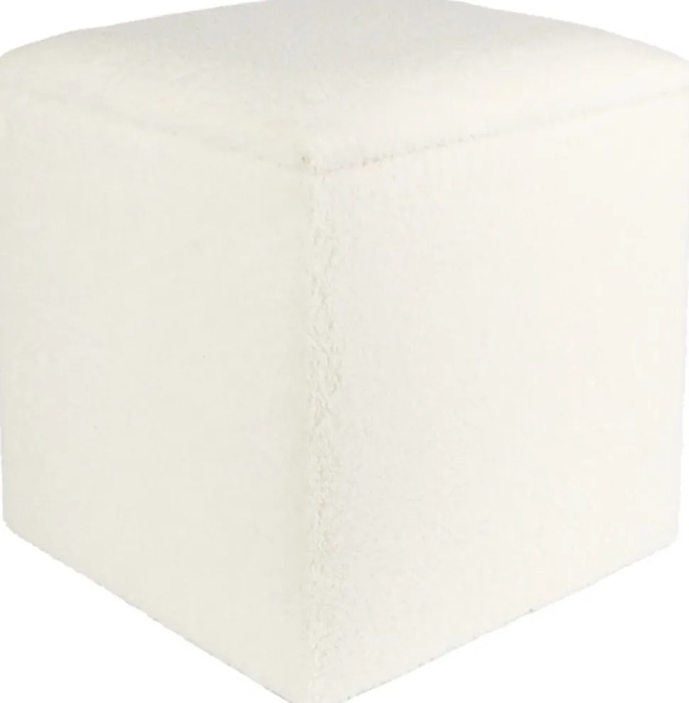 Petit fyrkantig med förvaring. pallen är klädd i ett mjukt vitt teddy material.