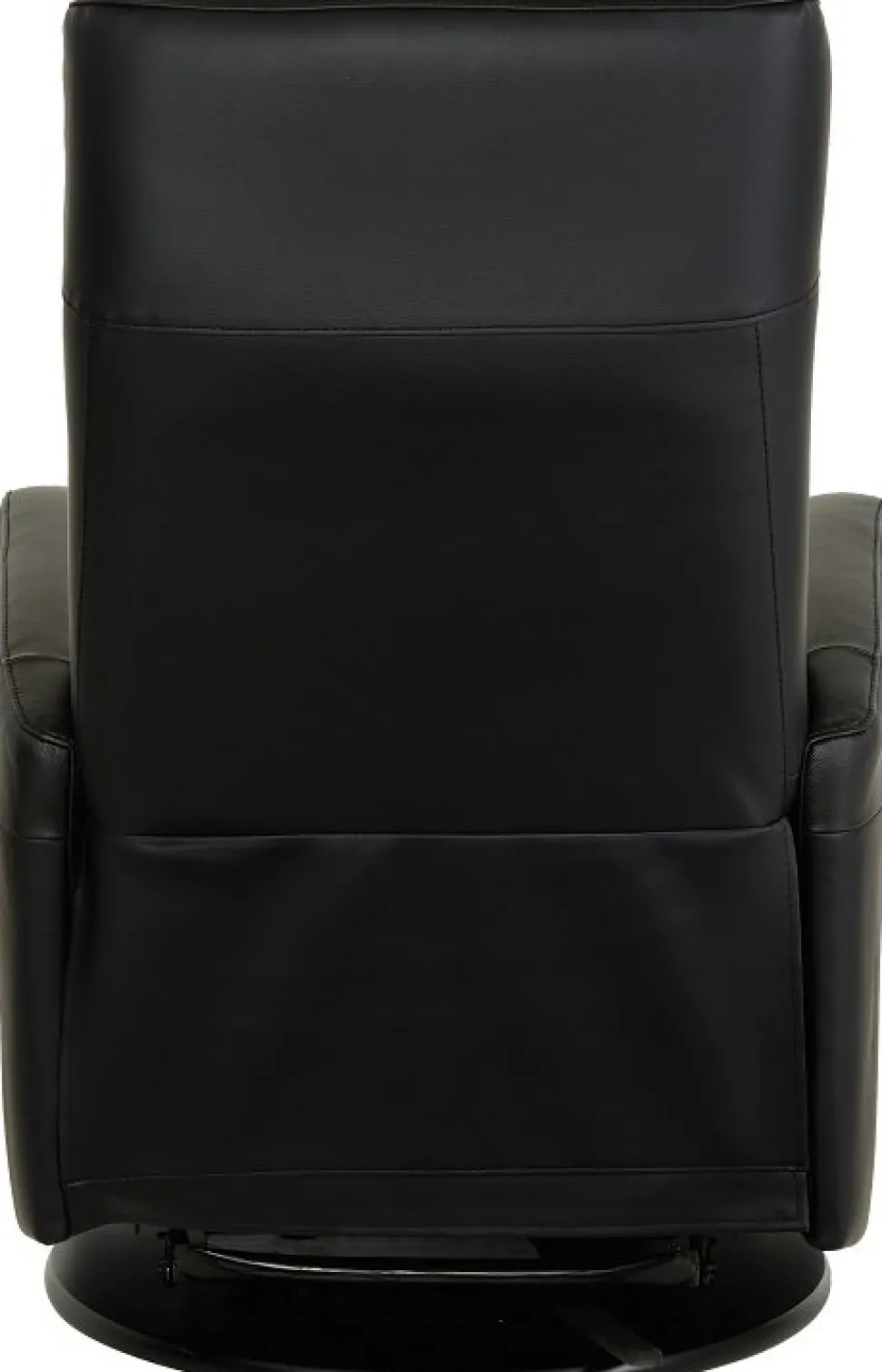 Frans är en mycket påkostad och exklusiv i ett slitstarkt svart äkta läder med PVC på sidorna. Gung och snurrfunktion. Fällbar i både rygg och den inbyggda fotdelen. Tiltfunktion och resfunktion framåt gör det lättare att resa sig från fåtöljen.