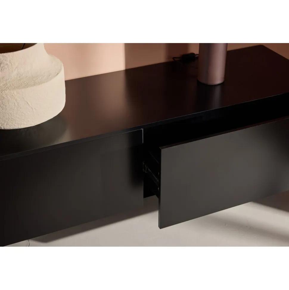 Ge ditt hem en modern och stilren touch med byrån Frihamn, en elegant förvaringslösning som kombinerar funktionalitet med sofistikerad design. Med sina generösa mått på 160 x 35 cm erbjuder Frihamn gott om utrymme för att organisera och förvara dina saker, samtidigt som den tillför en tidlös estetik till ditt rum. Byrån Frihamn är klädd i en djup och mattsvart färg som ger en känsla av elegans och modernitet. Den mörka nyansen ger byrån en distinkt och minimalistisk look, vilket gör den till ett perfekt komplement i både moderna och klassiska inredningsstilar. Den svarta färgen är också lätt att matcha med andra möbler och färgpaletter, vilket gör Frihamn till en mångsidig inredningsdetalj. Med en smal profil och en enkel, stilren design passar Frihamn utmärkt i både mindre och större utrymmen. Denna är perfekt för att hålla ordning på allt från kläder och böcker till dekorativa föremål och vardagliga tillbehör. De eleganta detaljerna och den gedigna konstruktionen säkerställer att byrån är både praktisk och hållbar. Låt byrån Frihamn bli en central del av din inredning och upplev hur dess svarta färg och stilrena design tillför en touch av modern elegans och funktionalitet till ditt hem.