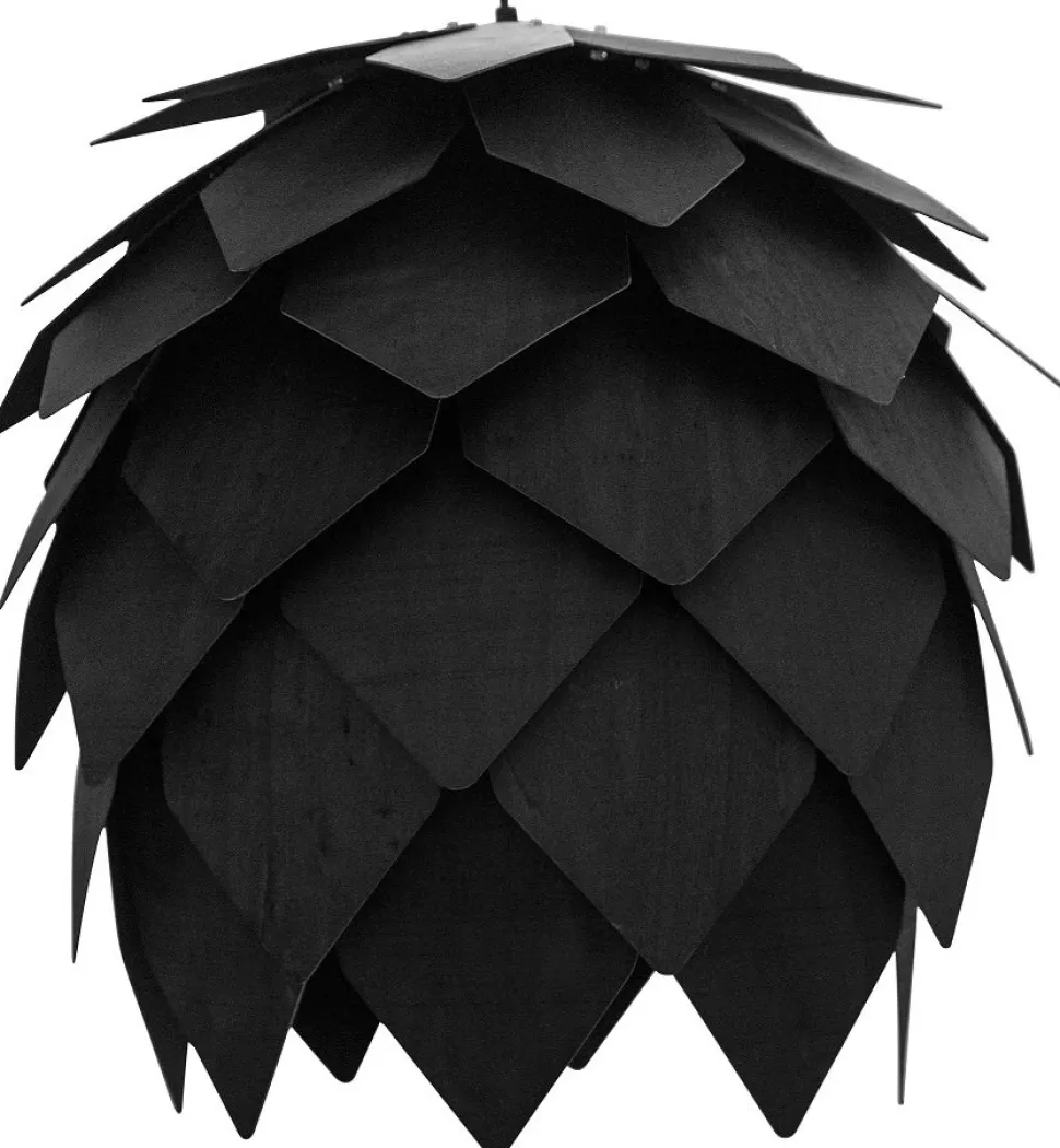 Taklampa Frost är gjord i svartbetsade trälameller. Frost lampan lyser upp vardagsrumen och är en ståtlig design icon.
