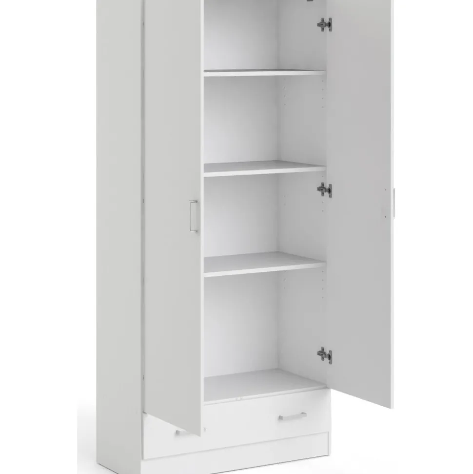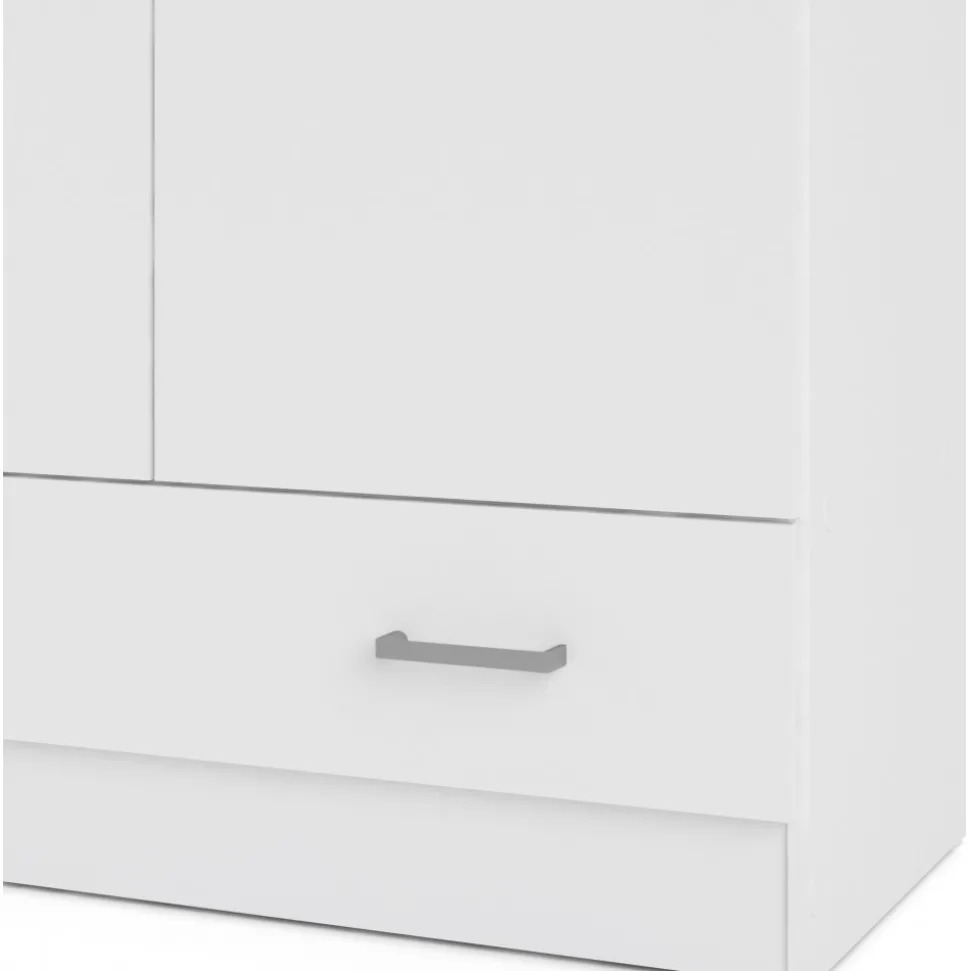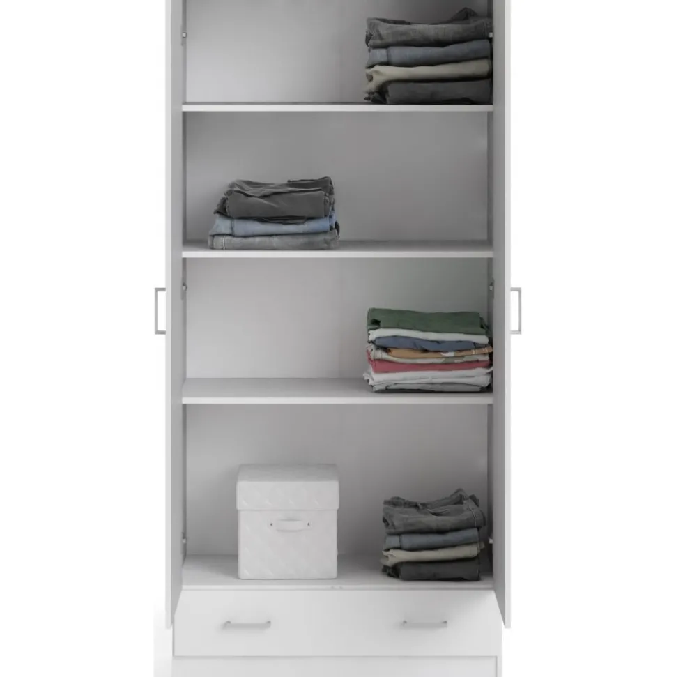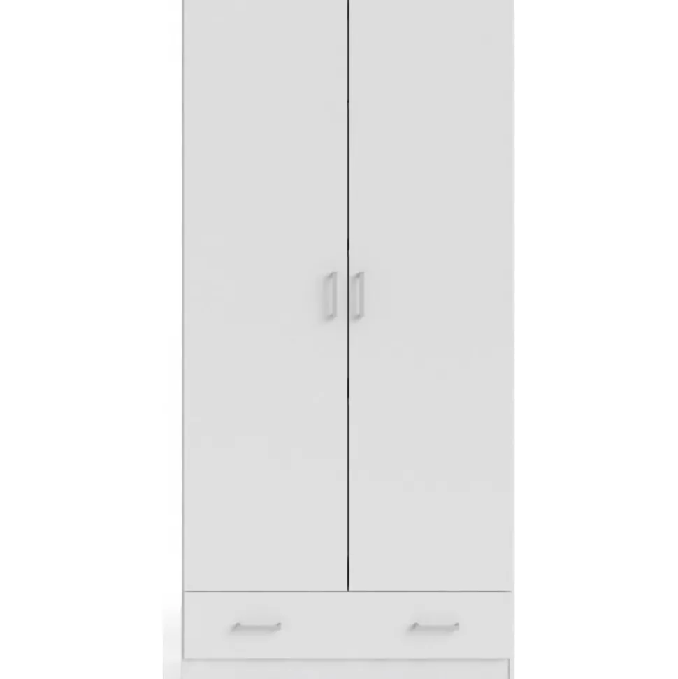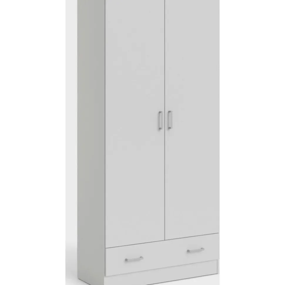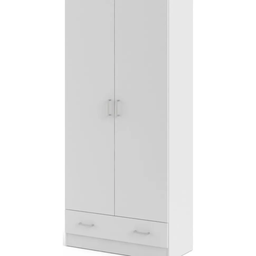 Garderob av trä med vit melamin.