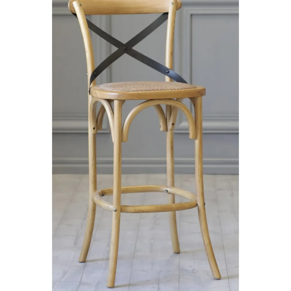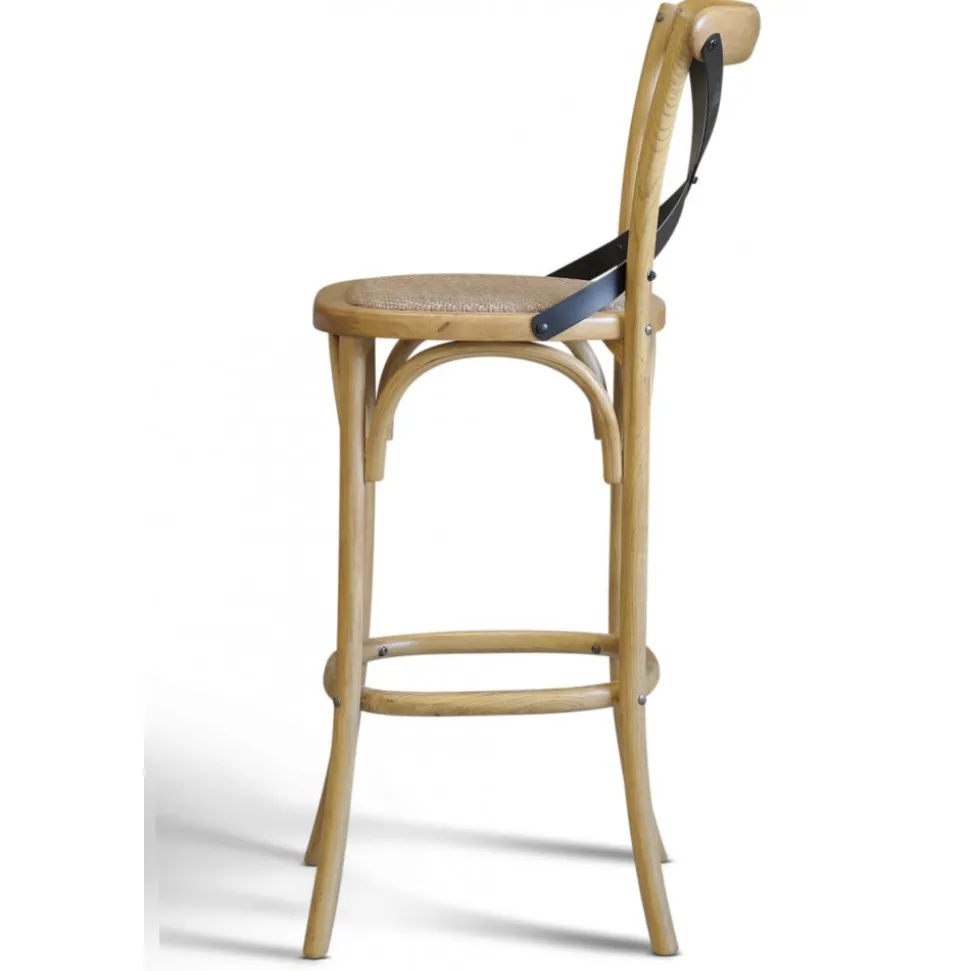 Det svartlackade metallkrysset i ryggen ger extra stöd och stabilitet, samtidigt som det tillför en spännande kontrast till träet och rottingen. Denna detalj skapar en kreativ och stilren helhet som gör att Gaston barstol verkligen utmärker sig.