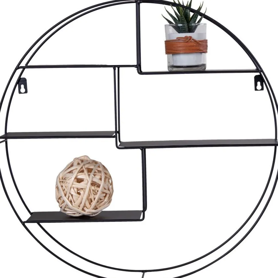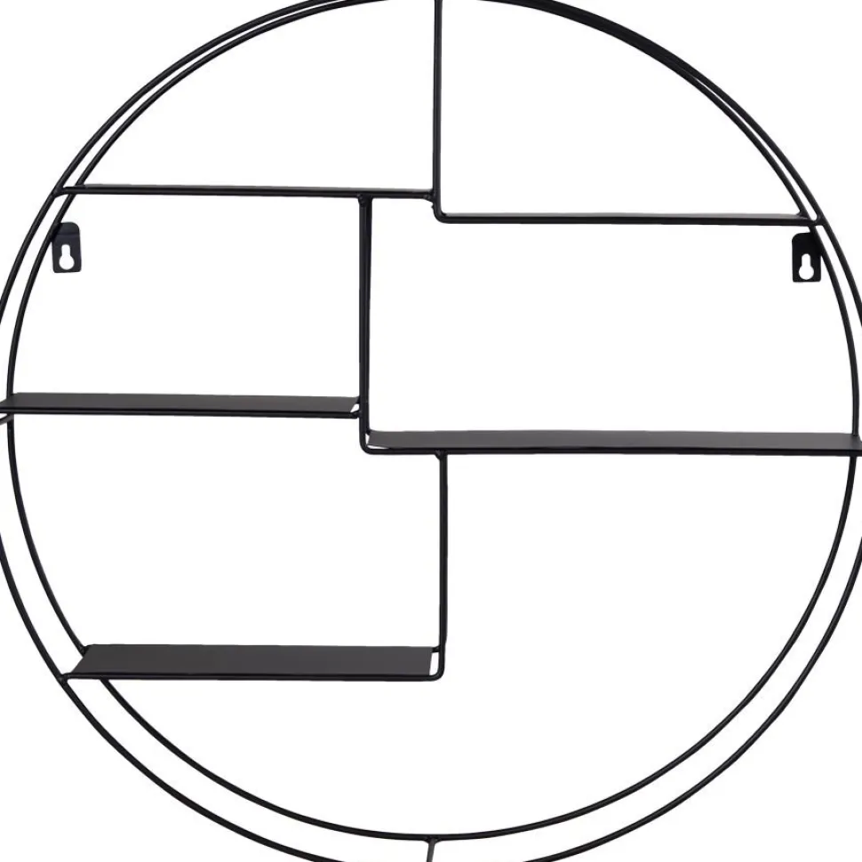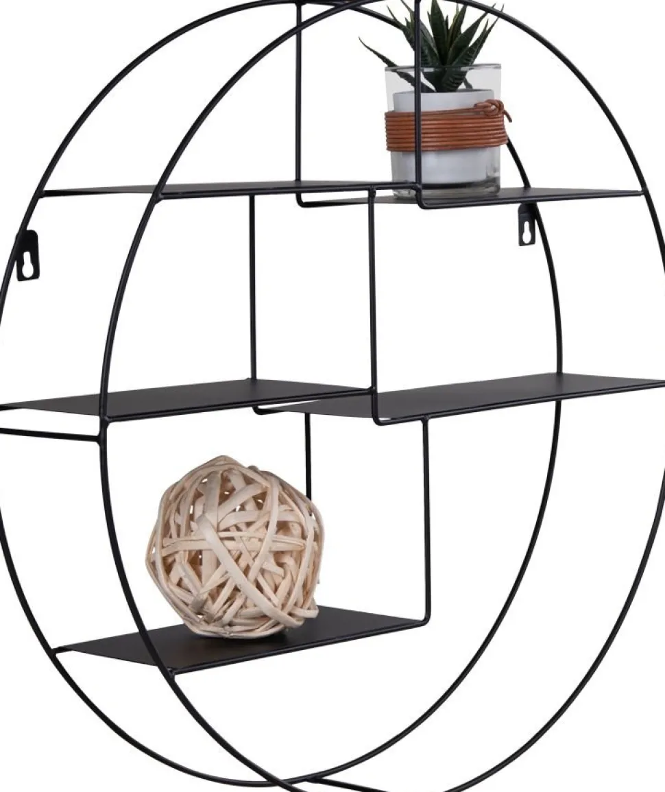 Vägghylla med svart ram.