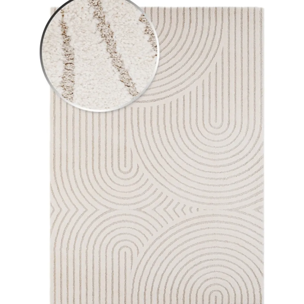 Genova Zen vit har en cremevit bottenfärg och ett mönster av halvcirklar i samma ton. Mönstret ger ett lugnt och behagligt intryck. Mattan är vävd med high/low-effekt, vilket innebär att mattan har olika lugghöjd som gör mönstret mer framträdande och effektfullt. Det är en mjuk som tack vare sina olika storlekar och sin stilrena look passar lika bra i sovrummet som vid din soffan.