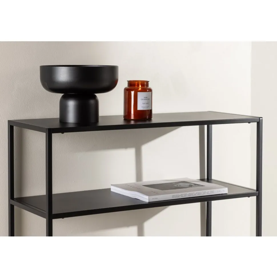 Georgetown – sidobordet där klassisk elegans möter modern funktionalitet! Med det här klassiska sidobordet i hållbart svart stål kan du enkelt skapa en trendsäker atmosfär i ditt charmiga hem där dina vackraste dekorationer och ljusstakar får ta plats. Men det är såklart inte bara vackert att se på utan fyller även en smart funktion. Med sin smarta design har detta ett hyllplan under toppskivan, vilket ger dig extra förvaringsutrymme utan att kompromissa med stilen. Organisera dina vardagliga behov och dekorativa föremål på ett snyggt sätt. Designen är också genomtänkt och går i de minimalistiska trenderna. Det svarta stålet är både hållbart och smälter enkelt in i de flesta inredningsstilar. Skapa en känsla av personlig stil och visa upp din estetik på ett elegant sätt. På så vis blir Georgetown sidobord en förlängning av din personlighet och inredningssmak. Levereras omonterad.