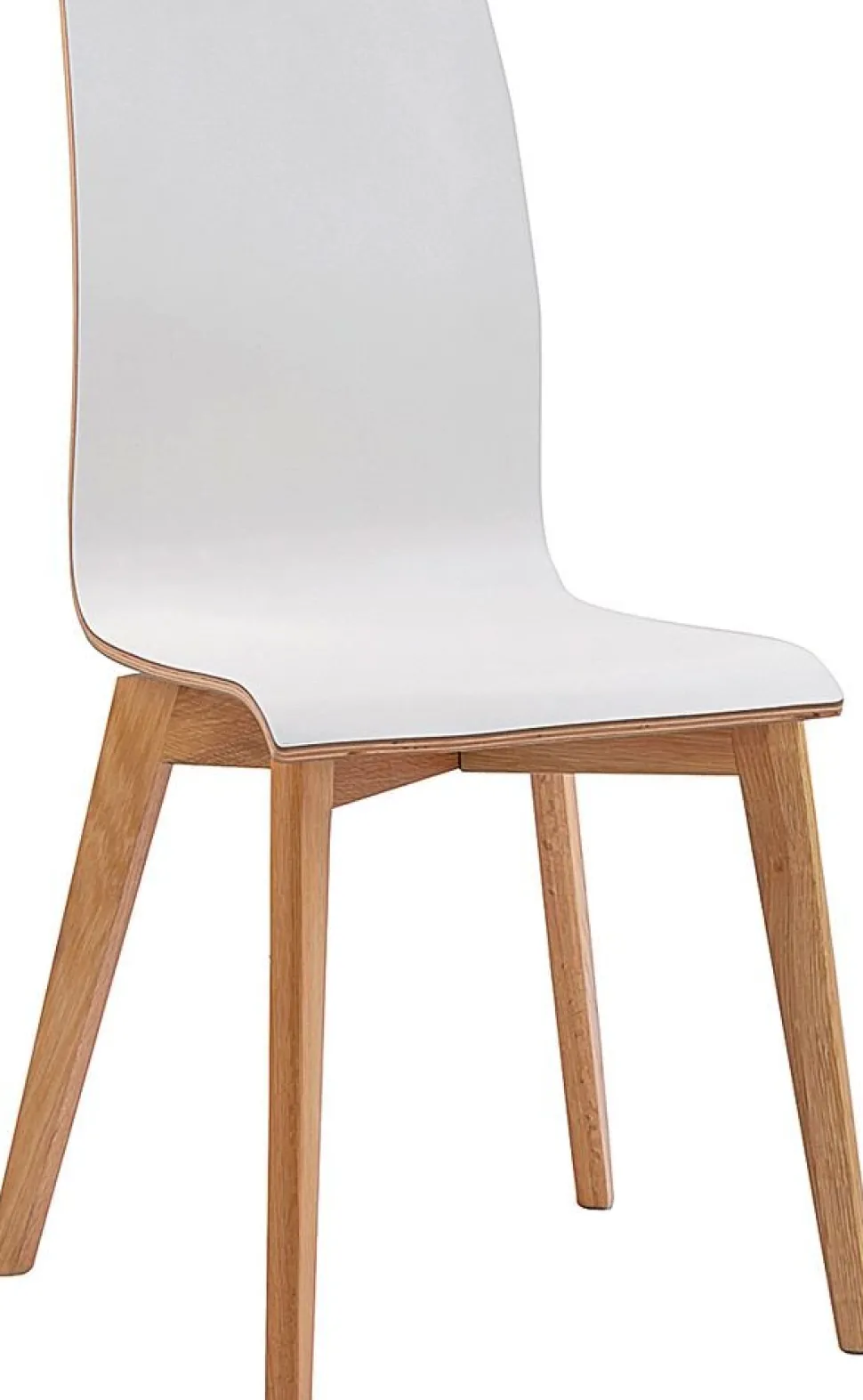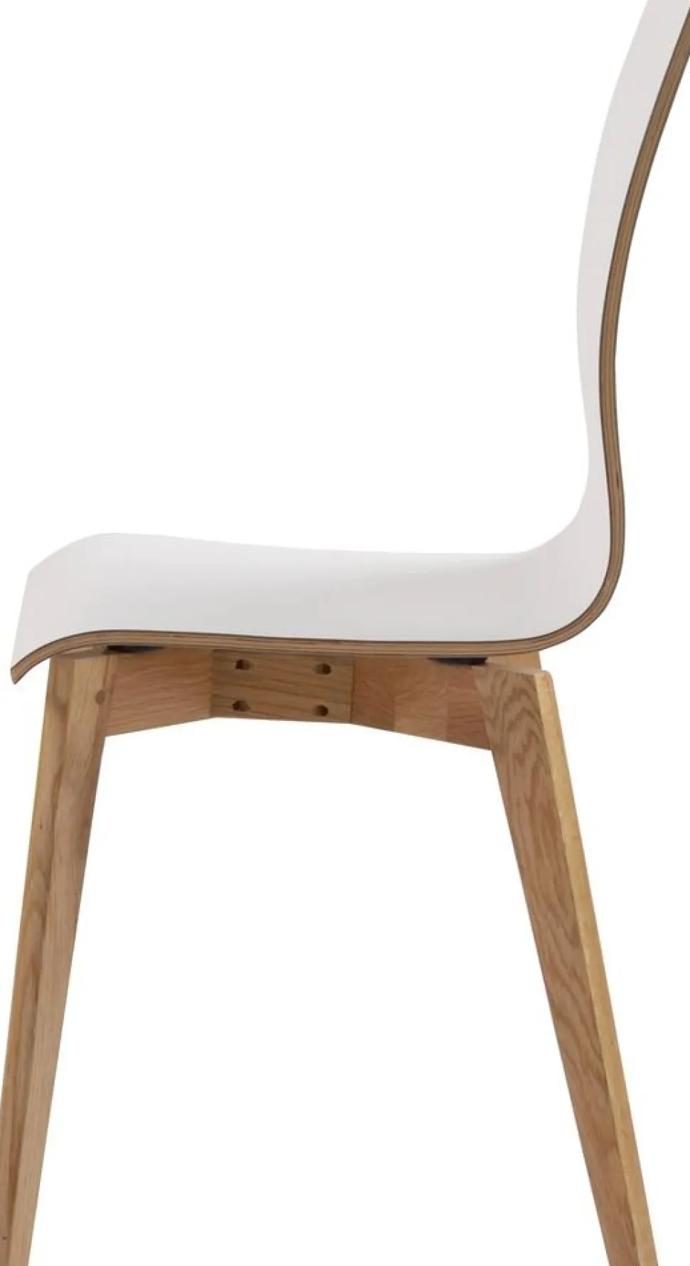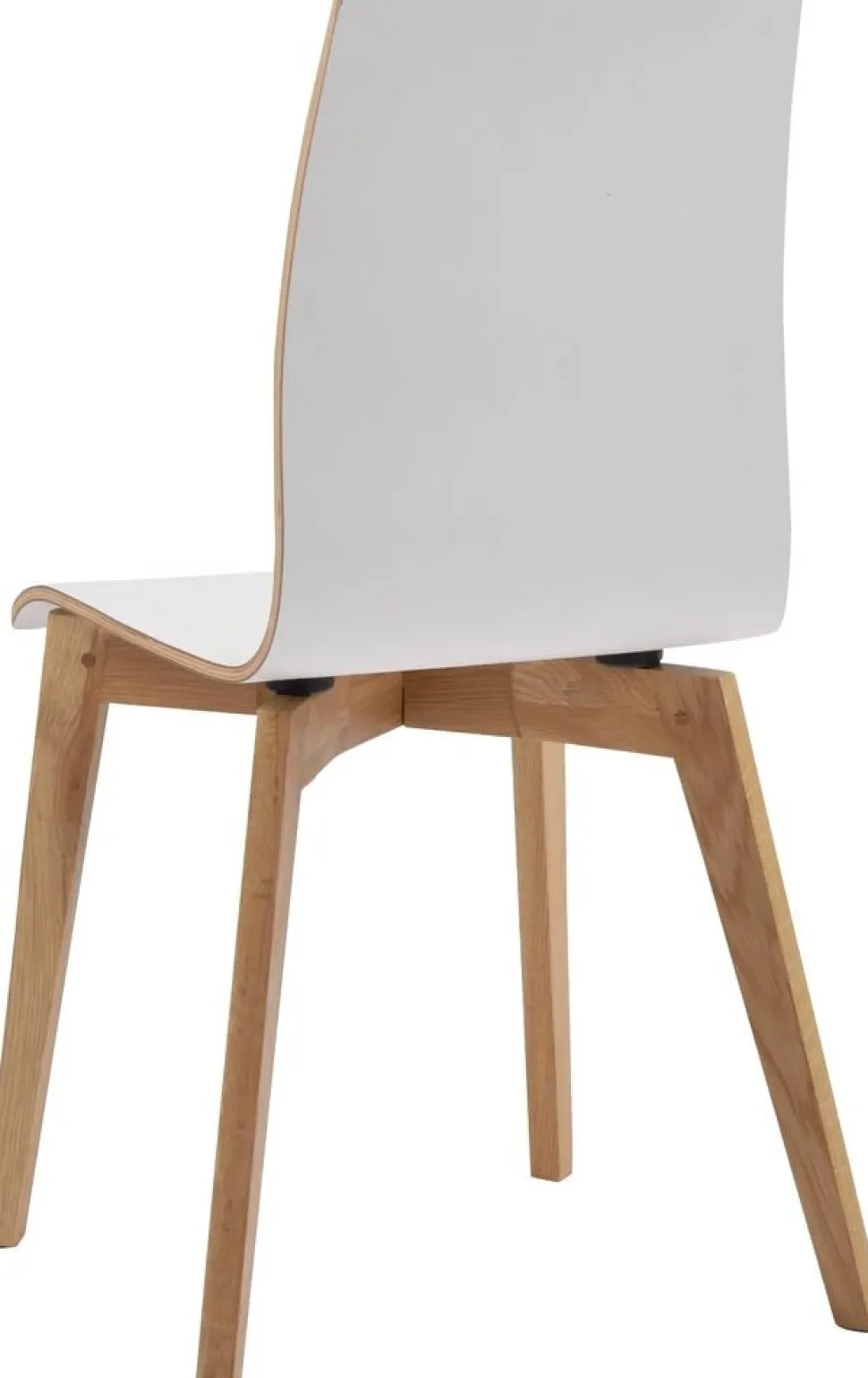 Stol från Skånska Rowico i massiv ek/plywood, svängd träsits. Vitlackerad sits samt rygg i ett stycke, träfärgade ben.