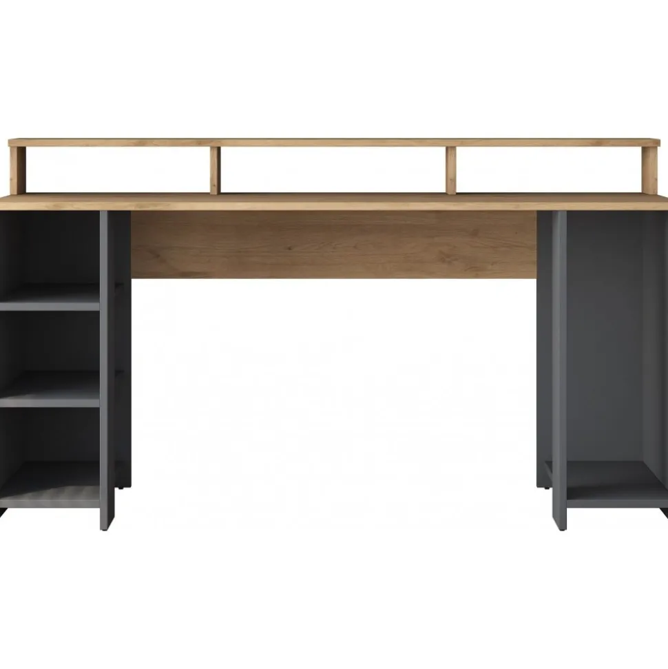 Skrivbord av melaminbelagd spånskiva.