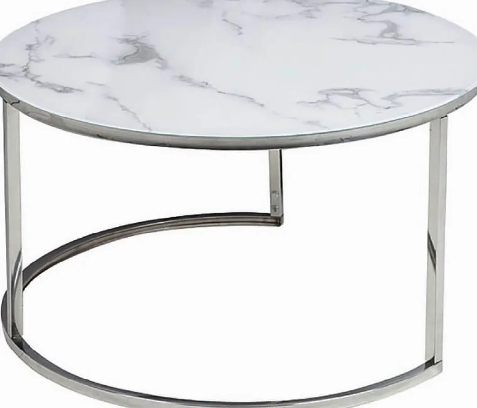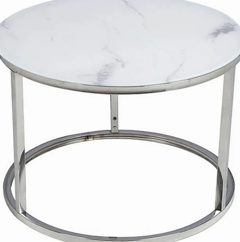 Soffbord av metall. Bordsskiva av glas.