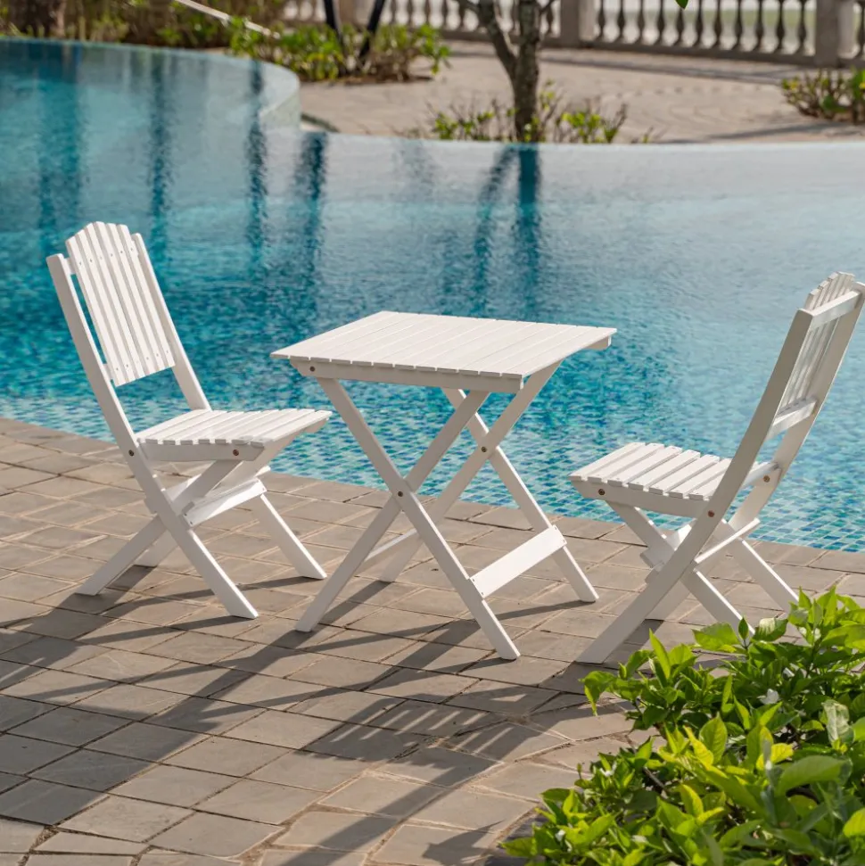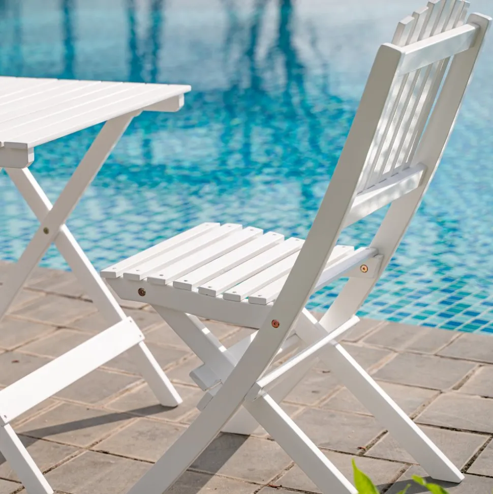 Stol Haväng i klassisk vit färg, vikbar så den praktiskt kan förvaras undan när utesäsongen är över. Haväng finns även som komplett matgrupp med bord, och soffa.