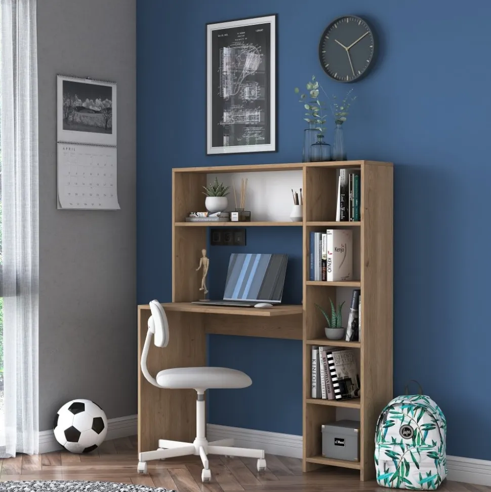 Skrivbord av melaminbelagd spånskiva.