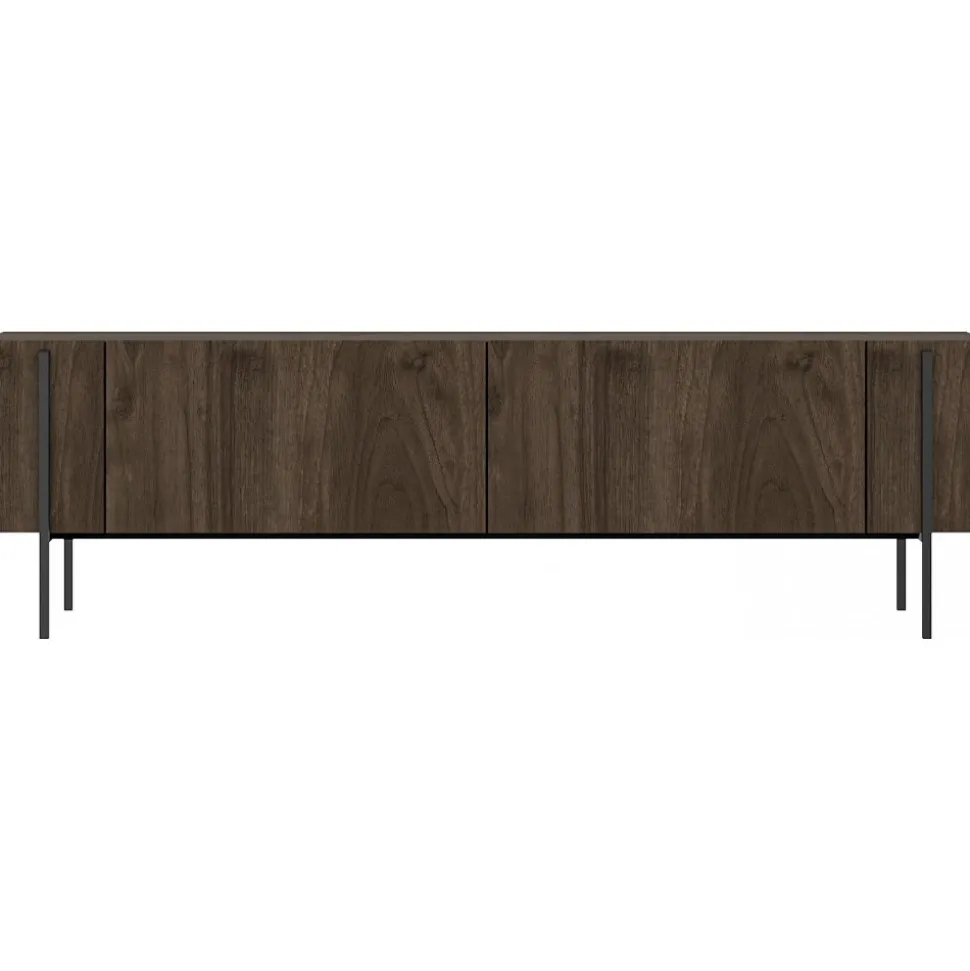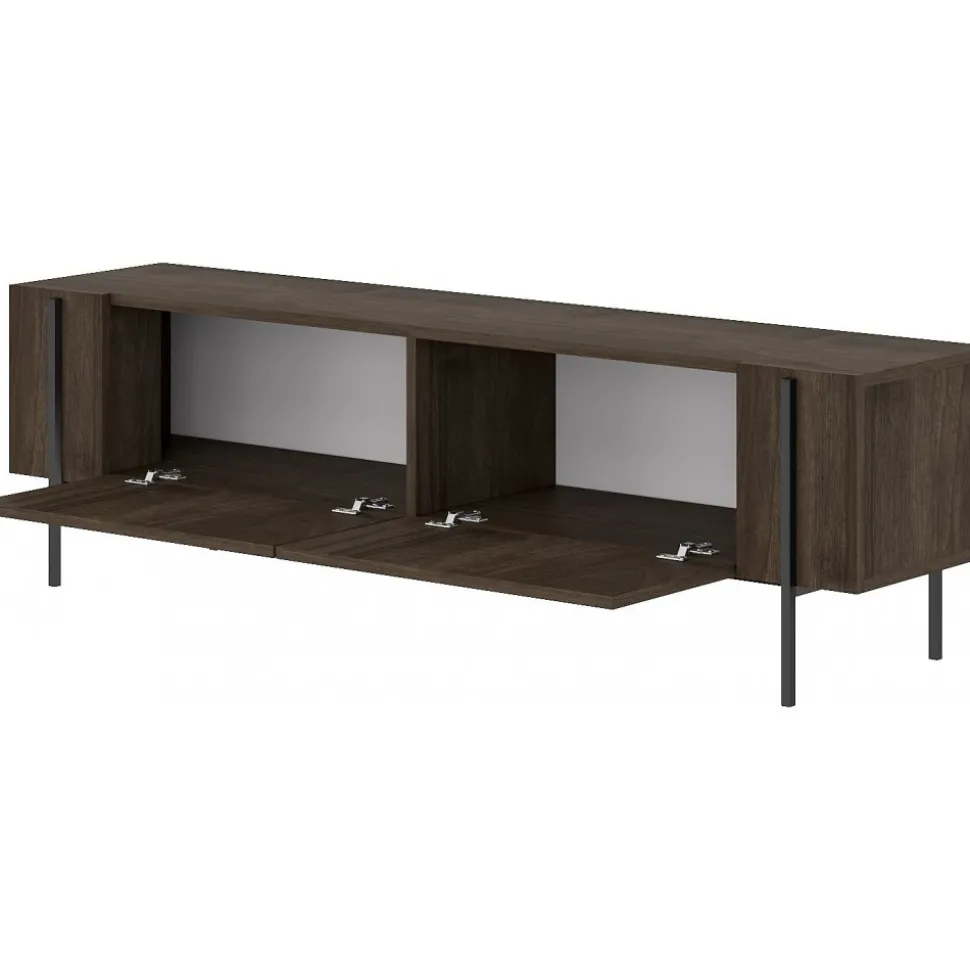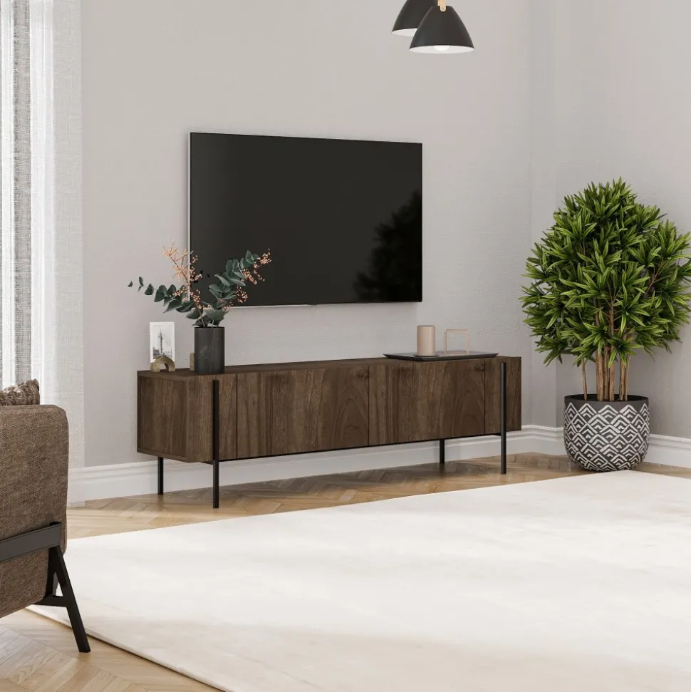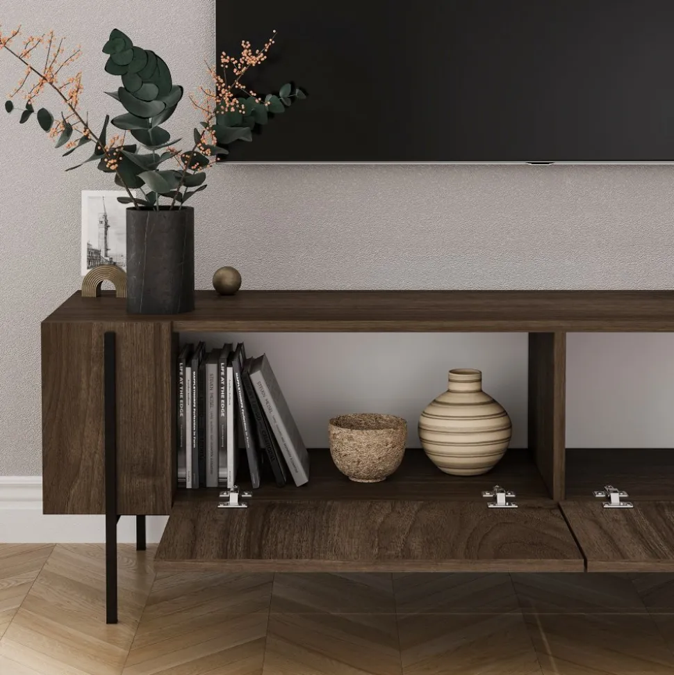 Förvandla ditt vardagsrum till ett elegant och organiserat utrymme med vår snygga mediabänk. Mediabänken är tillverkat av melaminbelagd spånskiva och är inte bara hållbart utan ger också en elegant touch till din heminredning. Den valnötsfärgade kulören ger en modern touch till alla rum, vilket gör det till det perfekta tillskottet till ditt underhållningsområde.