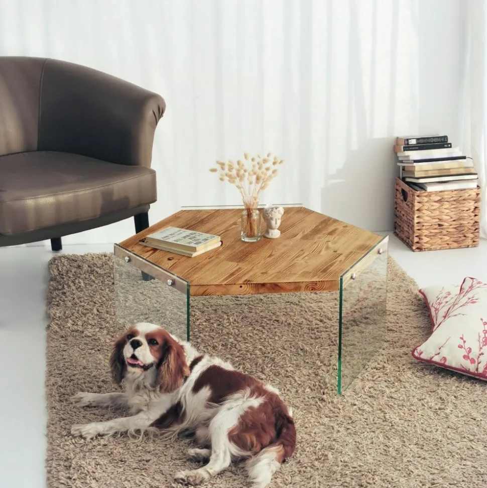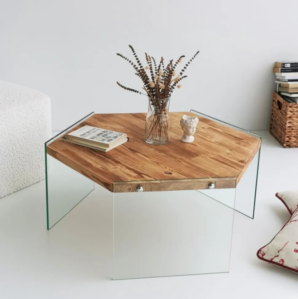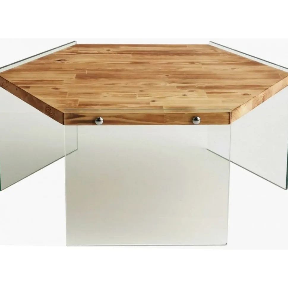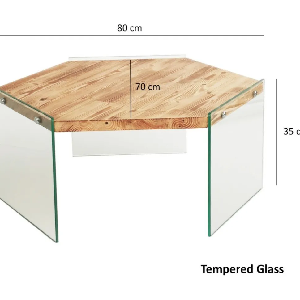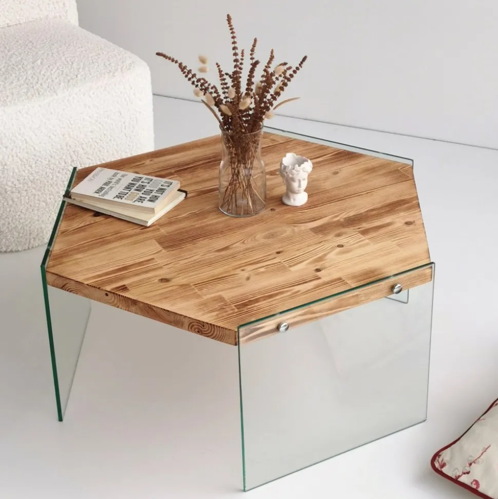 Soffbord av tempererat glas och furu.