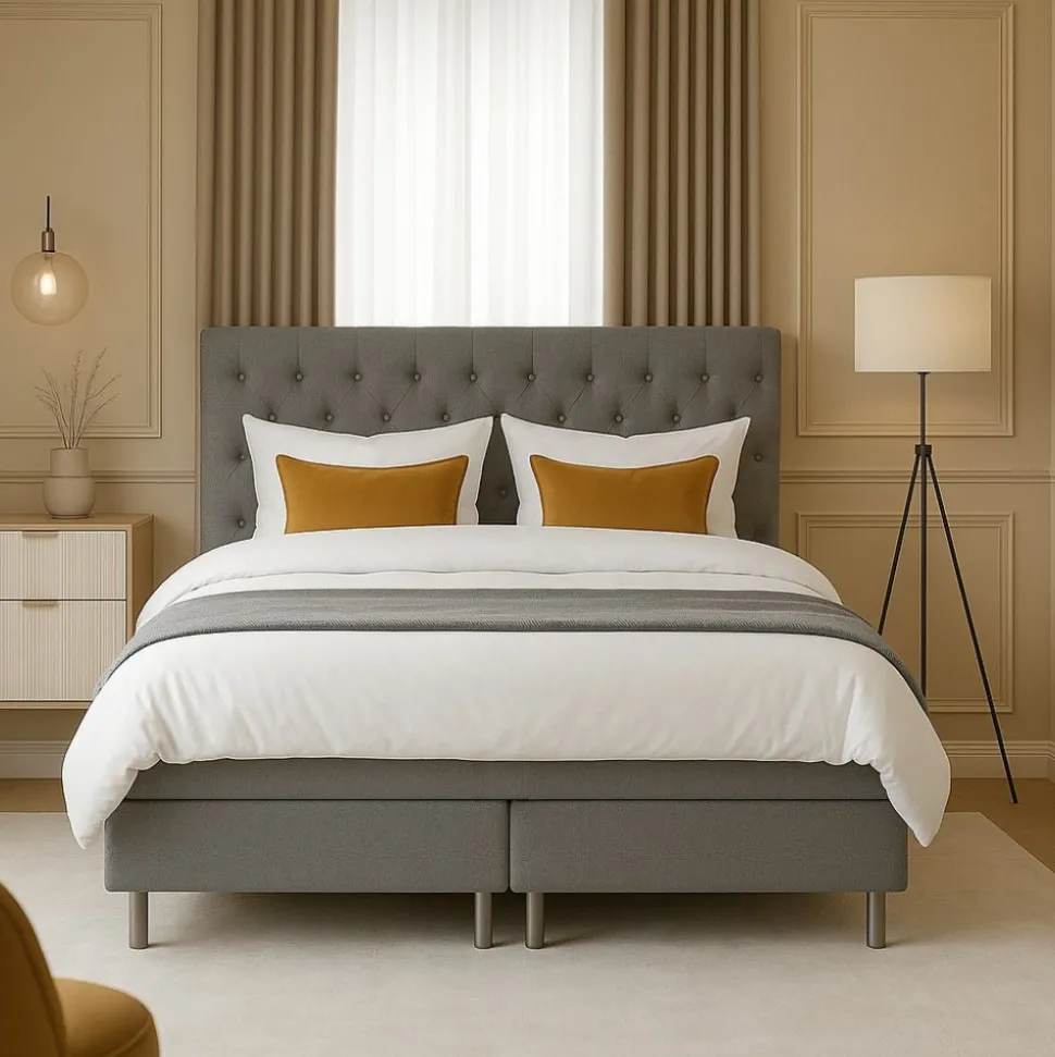 Hilton är vår mest prisvärda kontinentalsäng som är byggd för att hålla. Vi levererar sängen med och en lyxig och skön pikerad bäddmadrass.