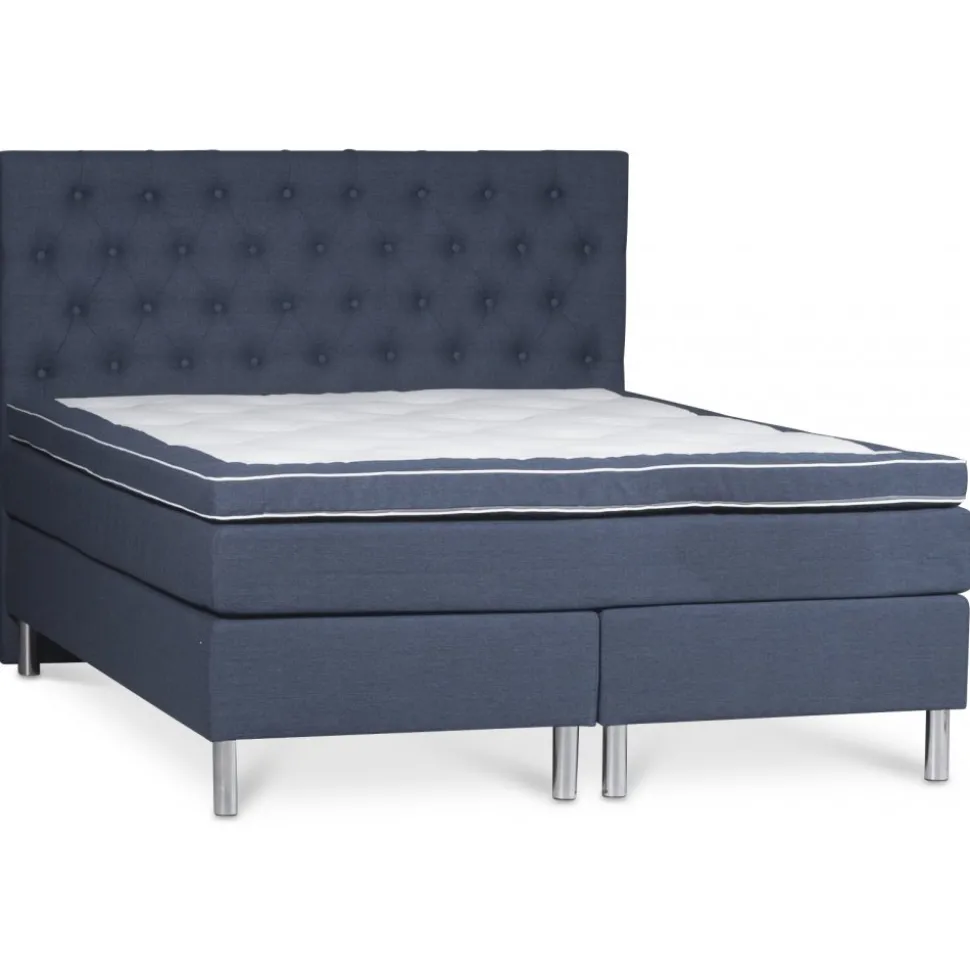 Sänggavel Hilton i Navyblue slitstarkt tyg (Inari 80). Sänggaveln har en klassisk design med djuphäftande knappar för att ge sänggaveln ett så modernt utseende som möjligt i sovrummet.