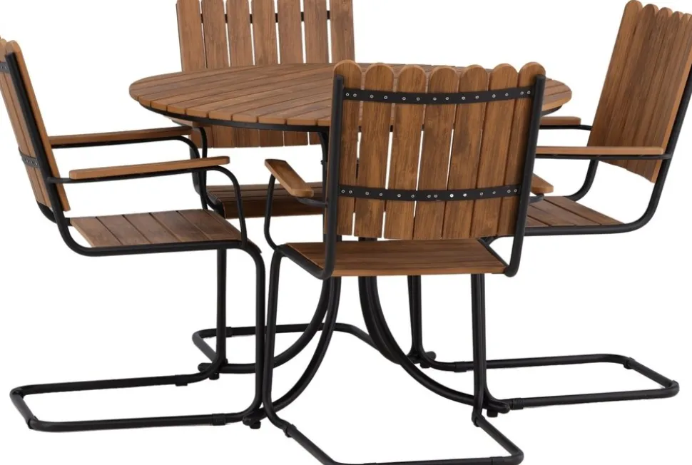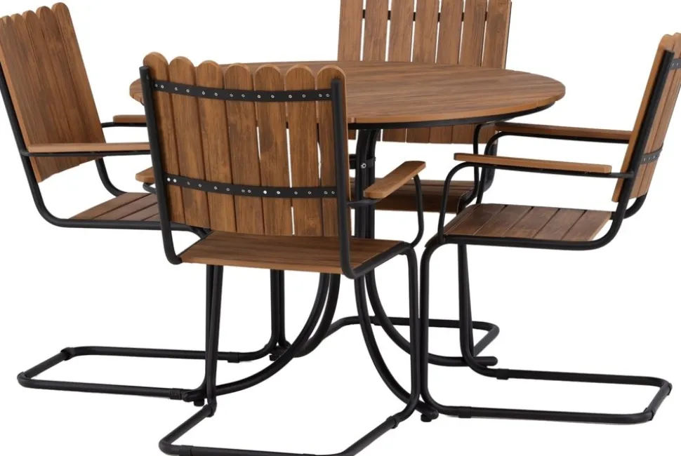 Modernt, slitstarkt och inbjudande! Det här runda matbordet från serien Holmsund skapar ett läckert blickfång i din trädgård med sin charmiga design. Matgruppen är tillverkad i svart stål och stolar samt bordets toppskiva är av träfärgat akacia. Komplettera med stolar i samma serie och njut av en matchande matgrupp som kommer pryda din uteplats!