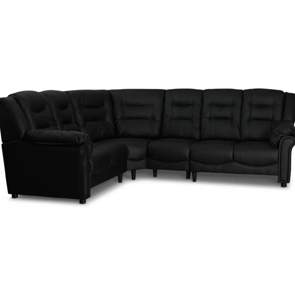 Hörnsoffa svart konstläder 5-sits – Peking: