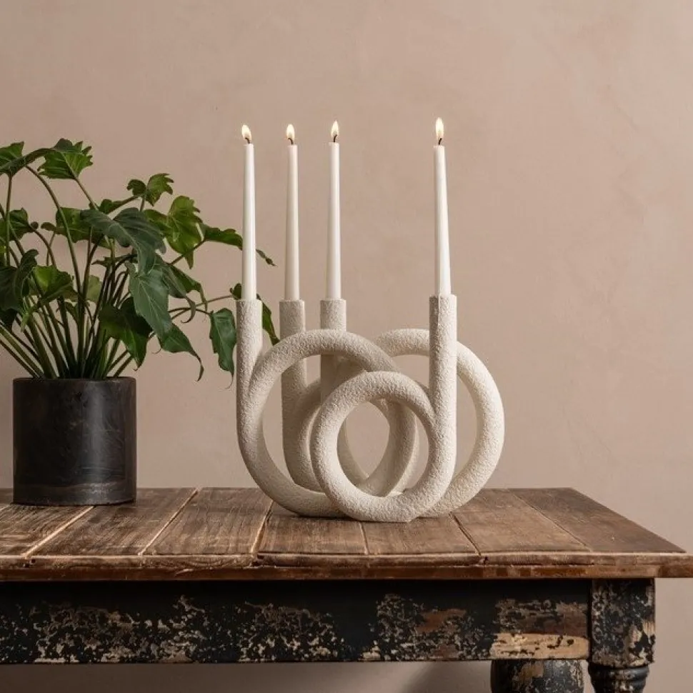 Dekorativ med runda fina former för 4 st ljus. Passar lika bra på bordet som i fönstret.