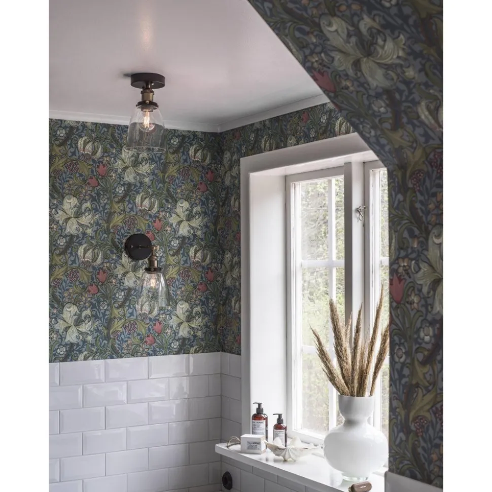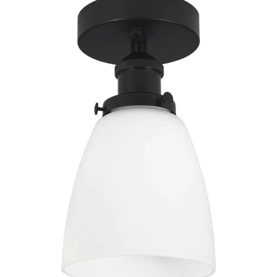 Taklampa i klassisk design med mjölkvitt glas och metallchassi helt i mattsvart ytfinish. Den är fuktskyddad i IP23 klassning och passar bra i badrumsmiljöer. Eftersom glasskärmen är handgjord kan det förekomma enstaka luftbubblor i glaset samt en viss ojämnhet i glastjocklek över glasytan. Observera att denna armatur är för fast installation och att det inte medföljer någon separata kontaktdon och anslutningskabel.