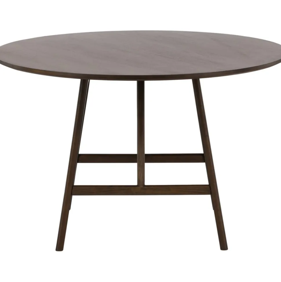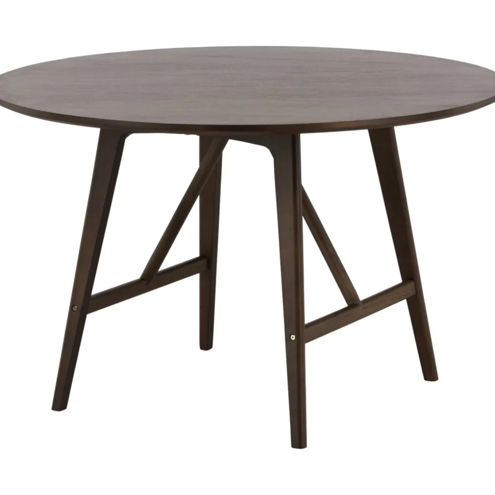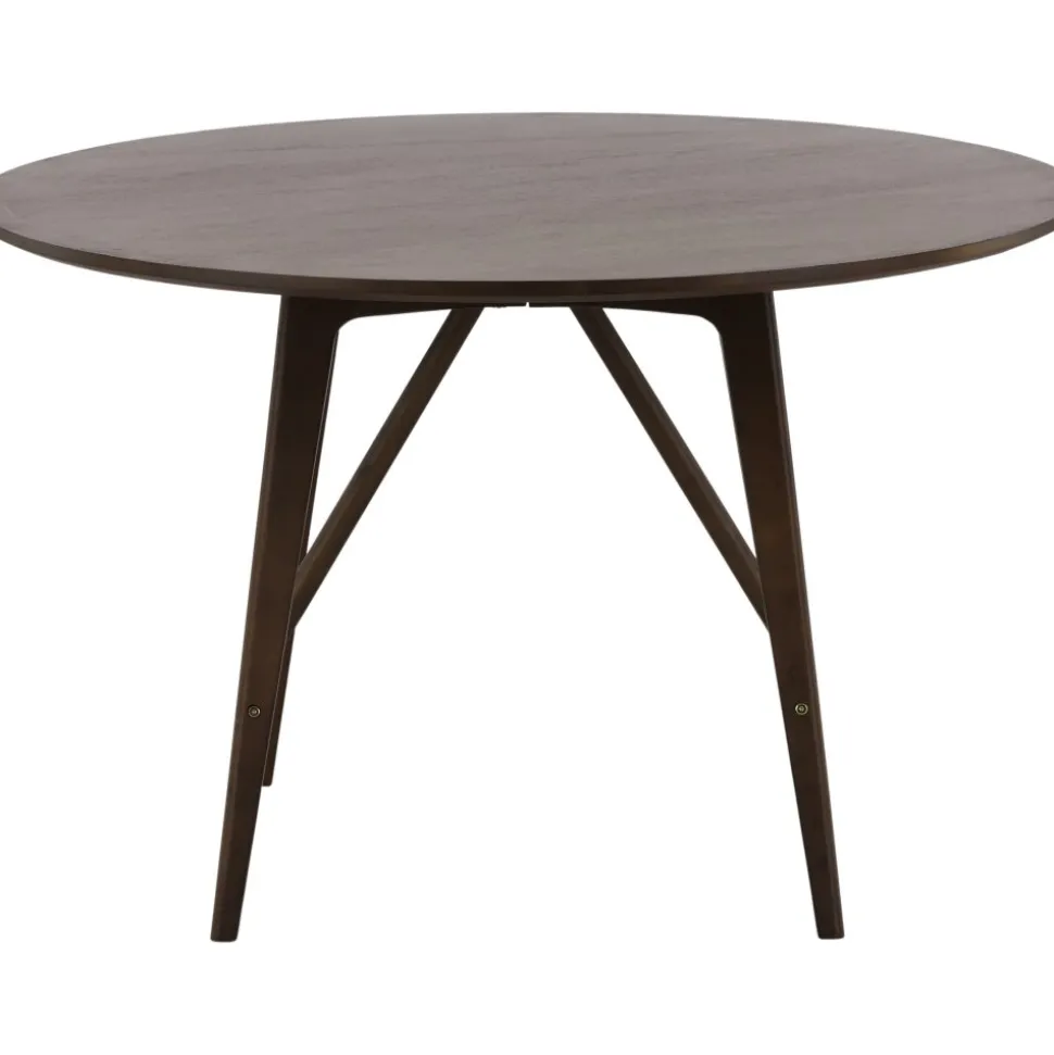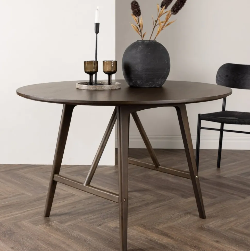 Ett runt passar utmärkt för att skapa sociala och inbjudande stunder vid alla måltider – här hamnar ingen på kanten! Bordet har en modern valnötsfärgad kulör som snyggt matchar det stilrena hemmet. Den runda bordsskivan har en matt finish och benen är lätt utsvängda med stabiliserande stomme, genomgående tillverkat i MDF och gummiträ. Matcha med ett par bekväma matstolar så får du en komplett matgrupp till ditt hem! Levereras omonterad.
