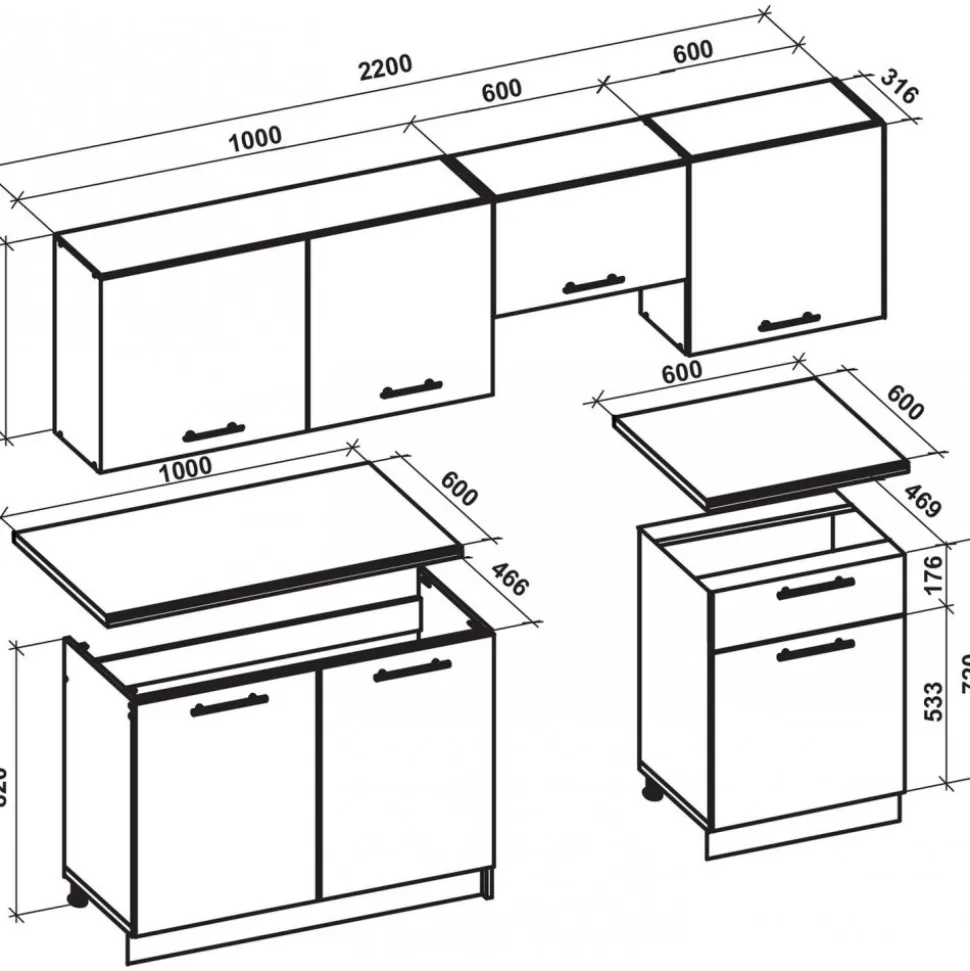 Katia komplett kök 220 cm – Ljusbeige/san marino ek/vit